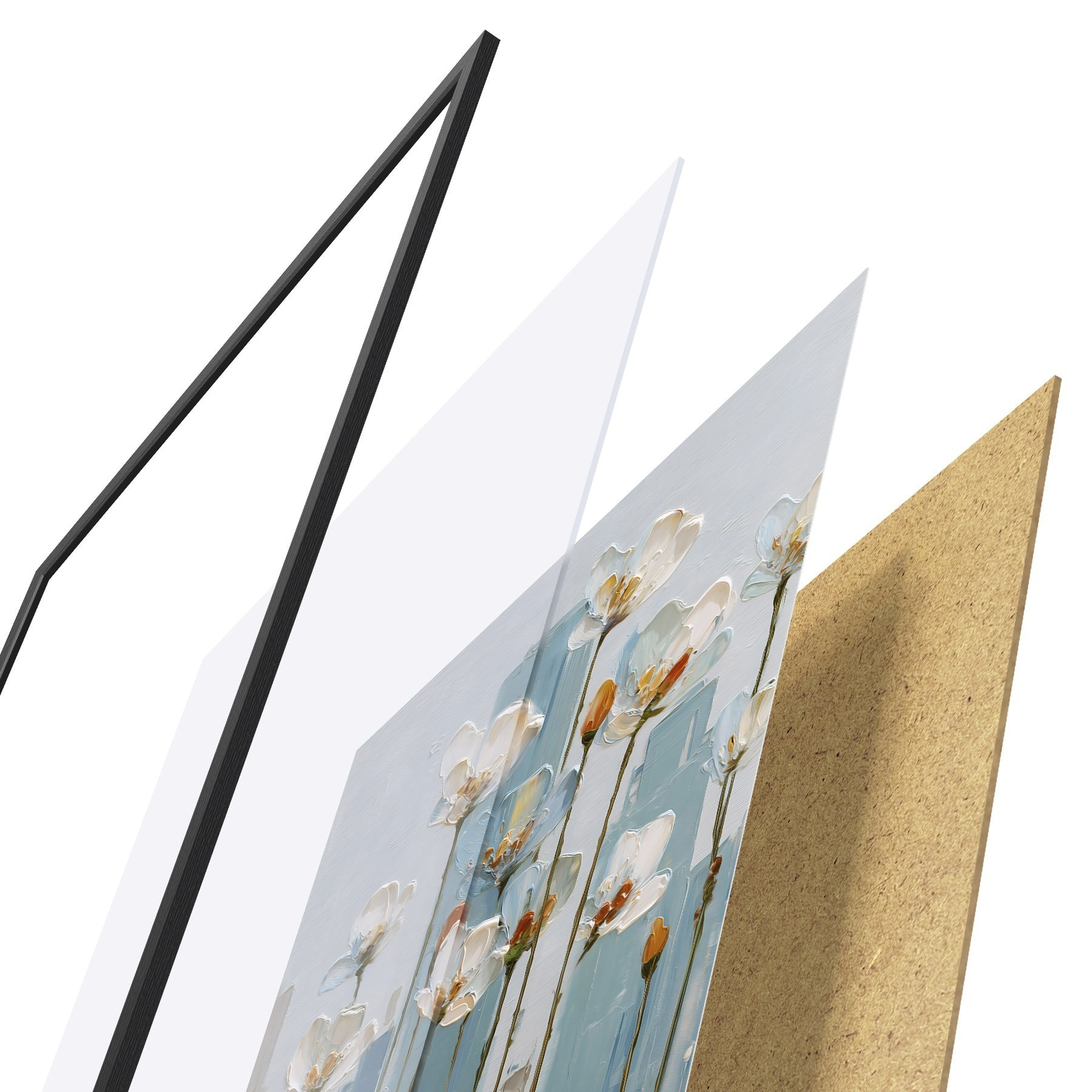 Le poster se compose d'un cadre, d'un plexiglas, d'une image imprimée et d'un support en aggloméré. Le poster peut être immédiatement accroché au mur grâce aux fixations au dos.