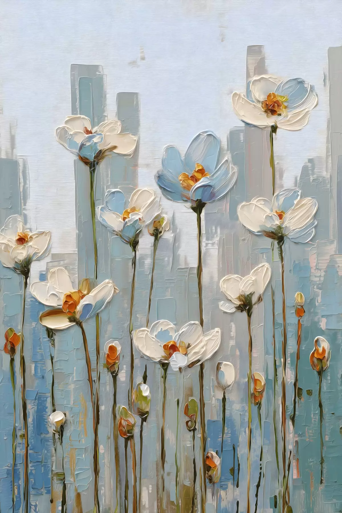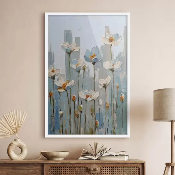 Affiche des fleurs sur fond urbain, dans le style de la peinture à l'huile Non f48786