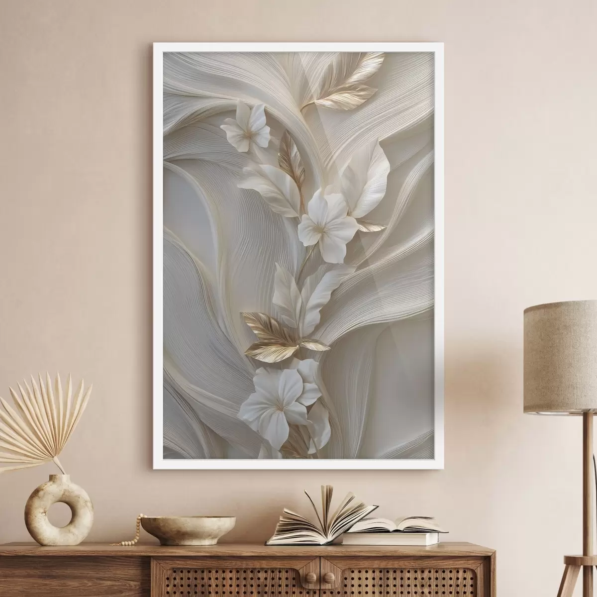 Affiche une imitation raffinée de feuilles, de textures et de fleurs en relief f48787