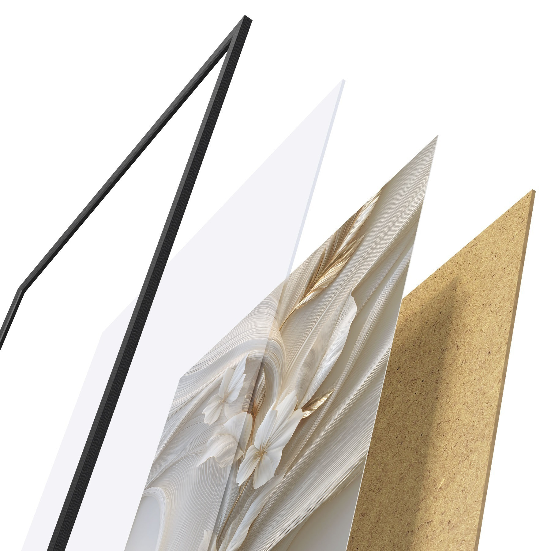 Le poster se compose d'un cadre, d'un plexiglas, d'une image imprimée et d'un support en aggloméré. Le poster peut être immédiatement accroché au mur grâce aux fixations au dos.