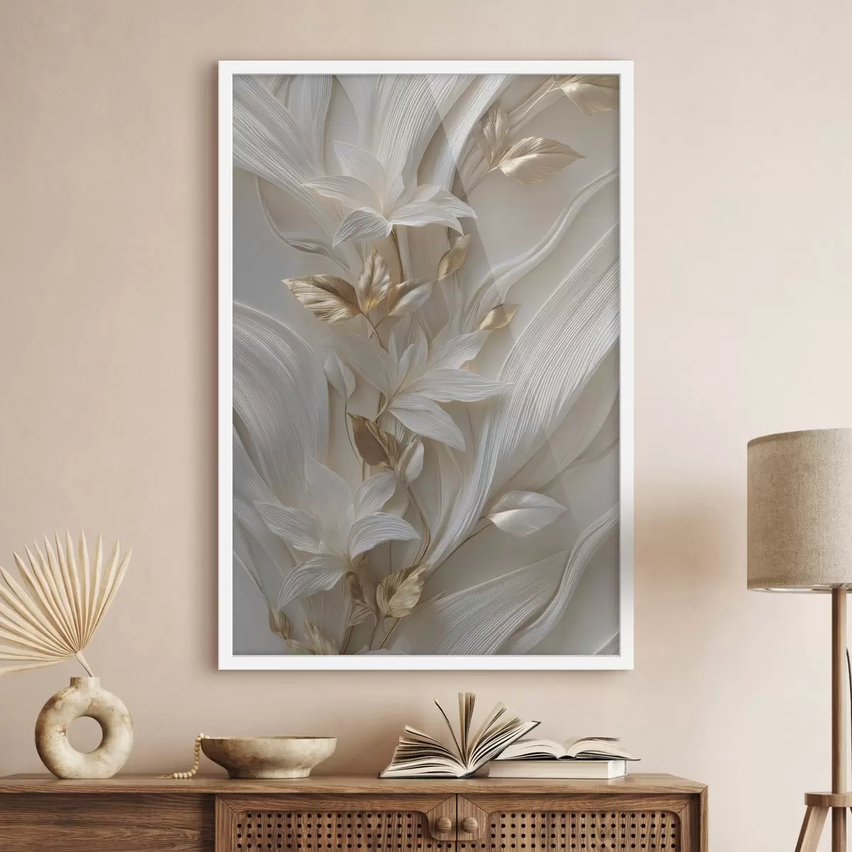 Affiche une imitation raffinée de feuilles, de textures et de fleurs en relief f48788