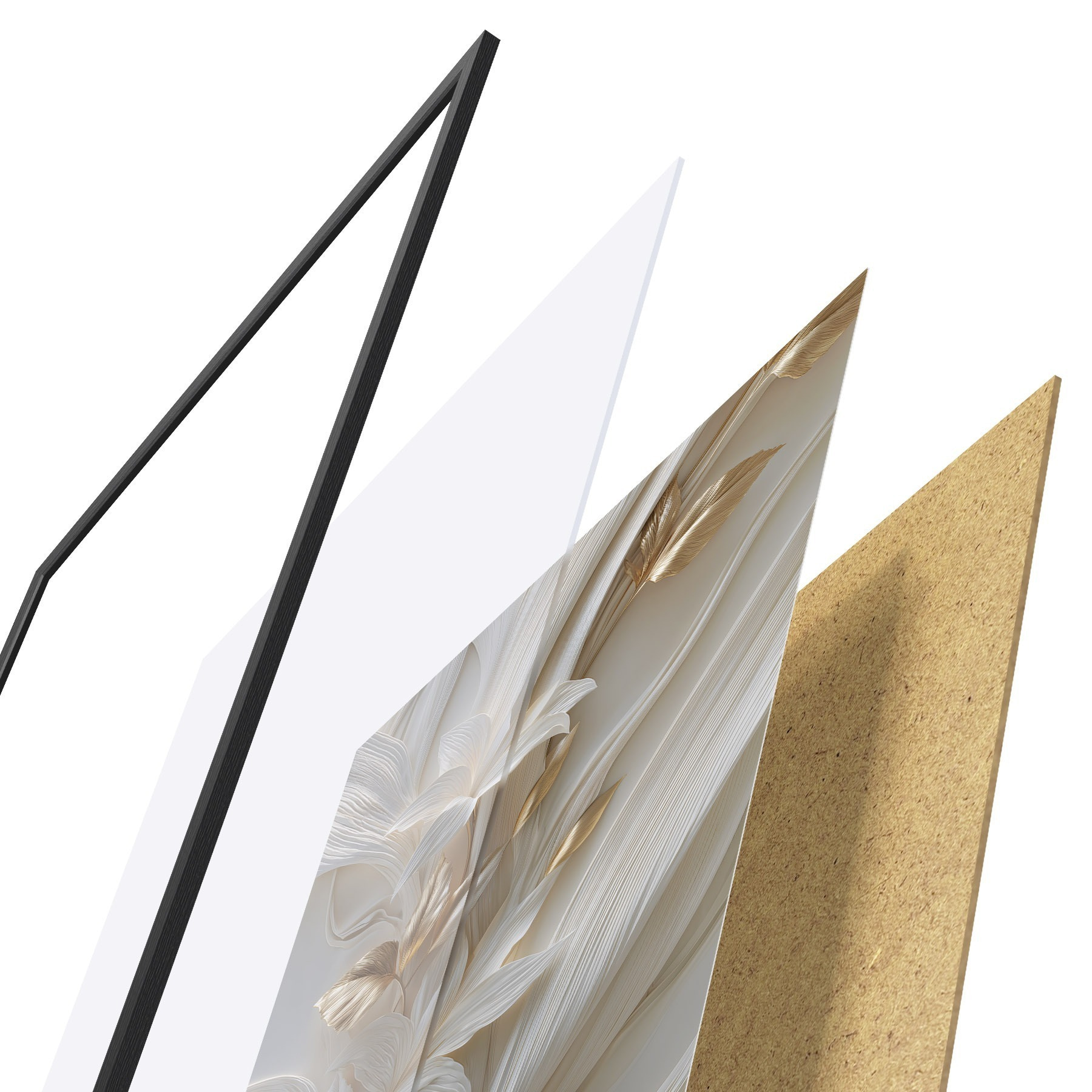 Le poster se compose d'un cadre, d'un plexiglas, d'une image imprimée et d'un support en aggloméré. Le poster peut être immédiatement accroché au mur grâce aux fixations au dos.