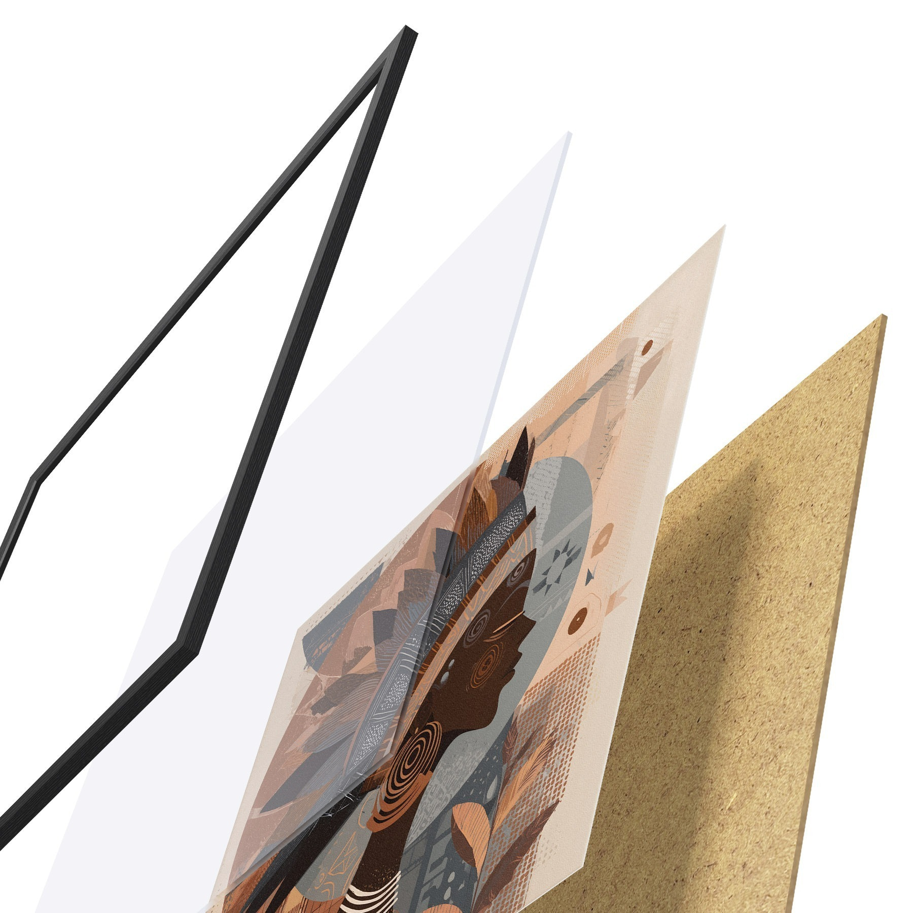 Le poster se compose d'un cadre, d'un plexiglas, d'une image imprimée et d'un support en aggloméré. Le poster peut être immédiatement accroché au mur grâce aux fixations au dos.