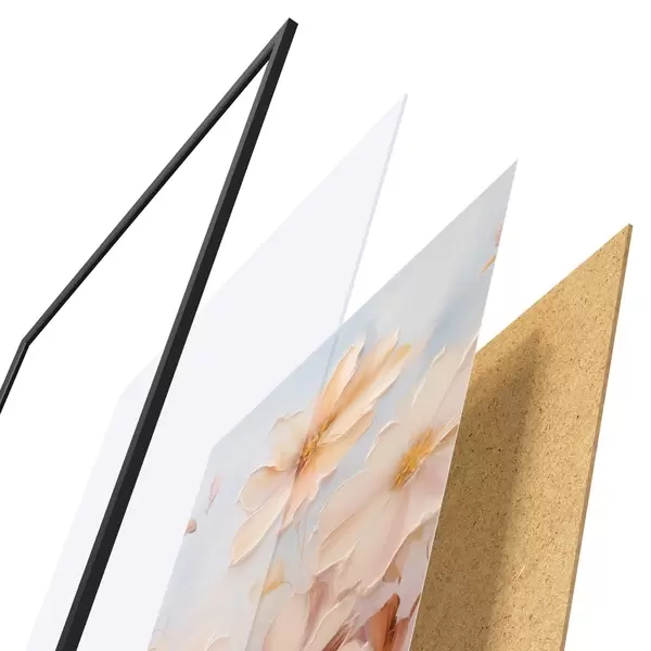 Le poster se compose d'un cadre, d'un plexiglas, d'une image imprimée et d'un support en aggloméré. Le poster peut être immédiatement accroché au mur grâce aux fixations au dos.