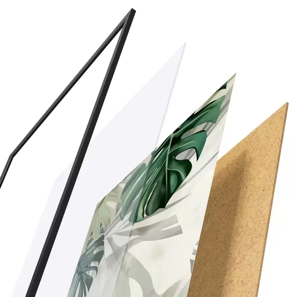 Le poster se compose d'un cadre, d'un plexiglas, d'une image imprimée et d'un support en aggloméré. Le poster peut être immédiatement accroché au mur grâce aux fixations au dos.