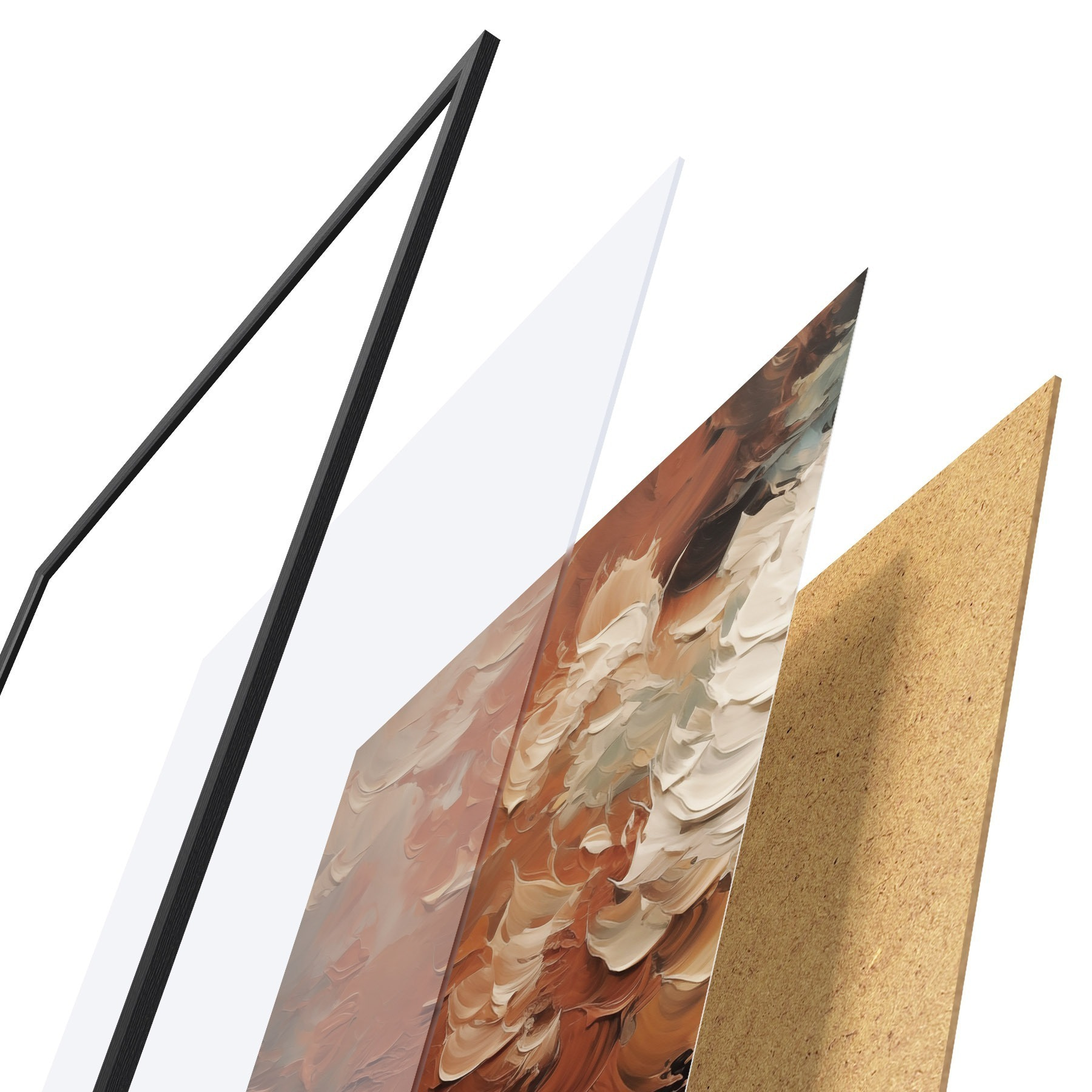 Le poster se compose d'un cadre, d'un plexiglas, d'une image imprimée et d'un support en aggloméré. Le poster peut être immédiatement accroché au mur grâce aux fixations au dos.
