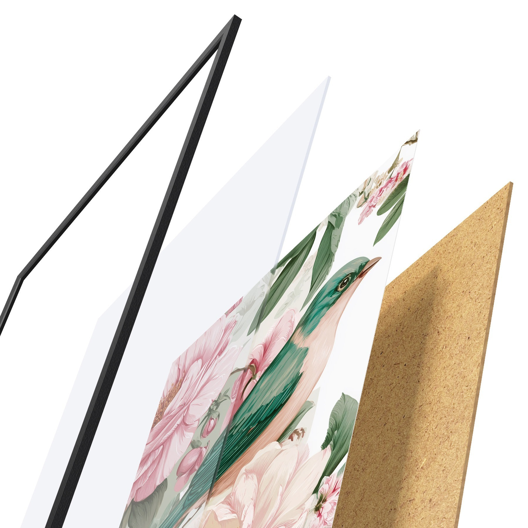 Le poster se compose d'un cadre, d'un plexiglas, d'une image imprimée et d'un support en aggloméré. Le poster peut être immédiatement accroché au mur grâce aux fixations au dos.