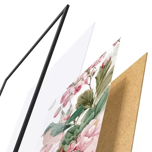 Le poster se compose d'un cadre, d'un plexiglas, d'une image imprimée et d'un support en aggloméré. Le poster peut être immédiatement accroché au mur grâce aux fixations au dos.