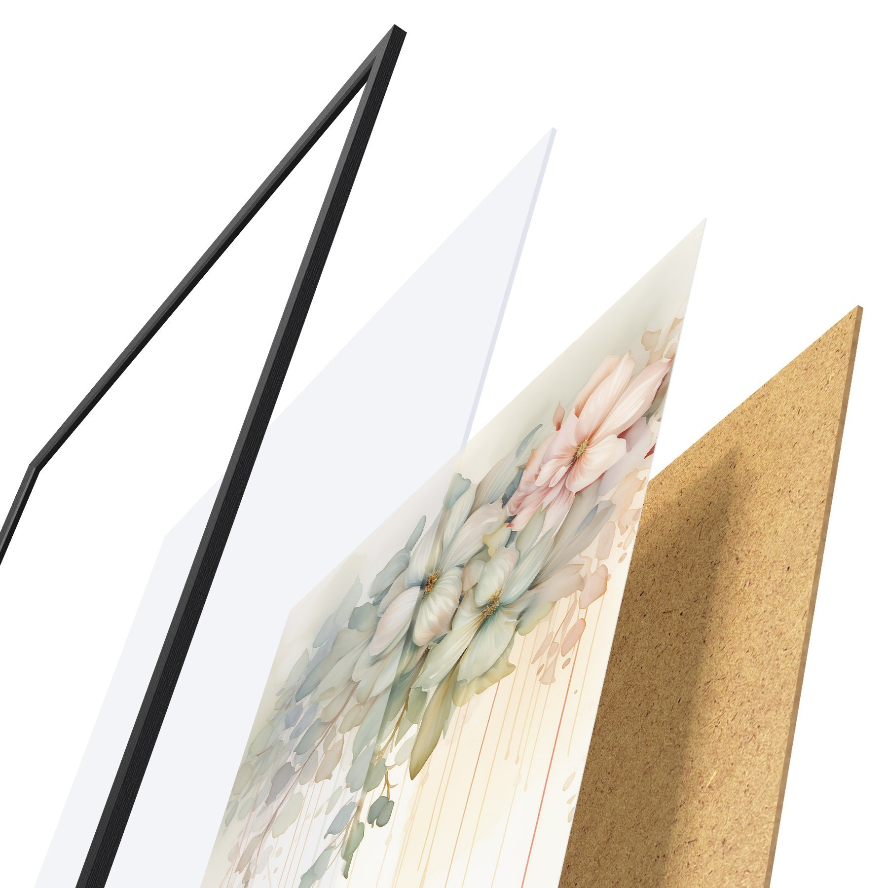 Le poster se compose d'un cadre, d'un plexiglas, d'une image imprimée et d'un support en aggloméré. Le poster peut être immédiatement accroché au mur grâce aux fixations au dos.