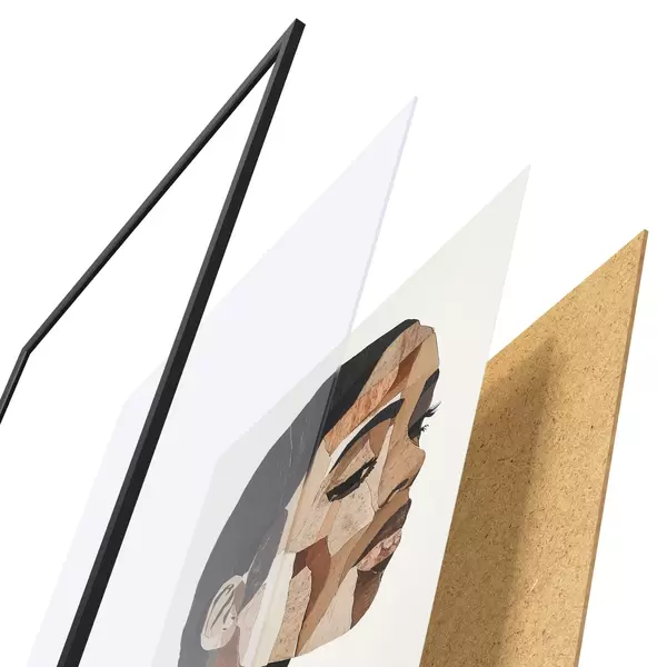 Le poster se compose d'un cadre, d'un plexiglas, d'une image imprimée et d'un support en aggloméré. Le poster peut être immédiatement accroché au mur grâce aux fixations au dos.