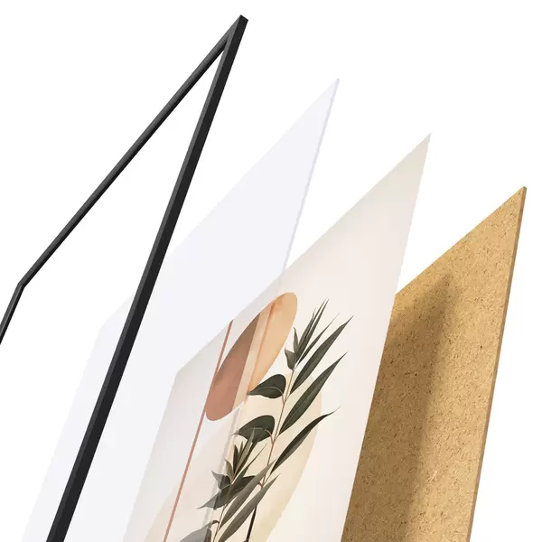 Le poster se compose d'un cadre, d'un plexiglas, d'une image imprimée et d'un support en aggloméré. Le poster peut être immédiatement accroché au mur grâce aux fixations au dos.