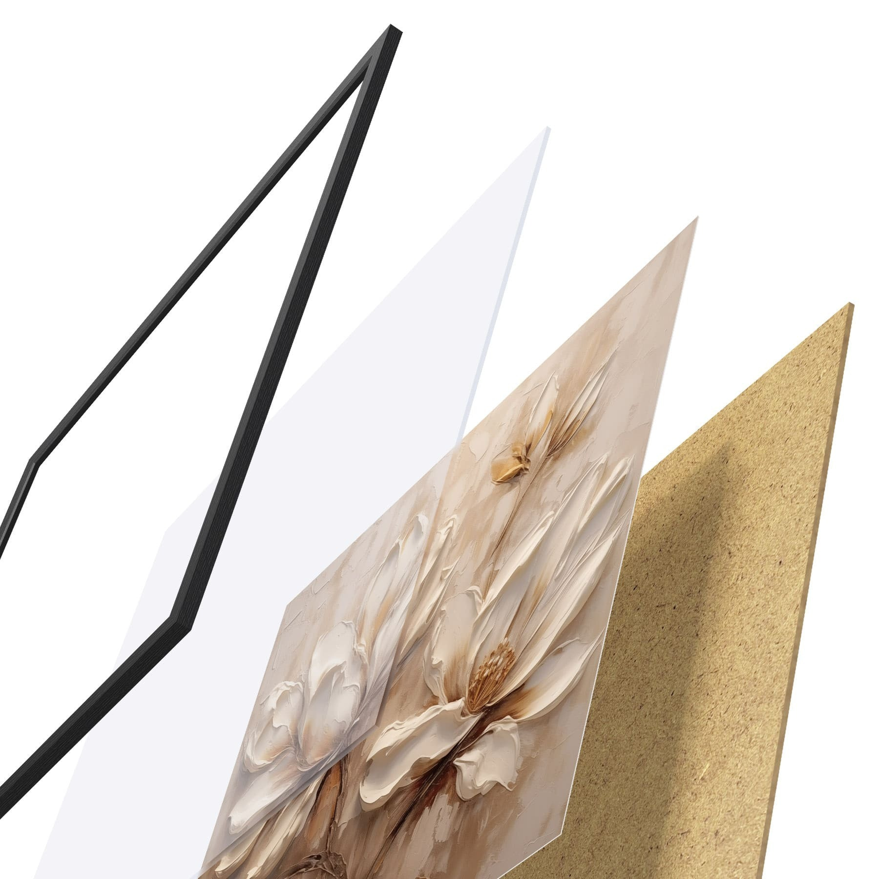 Le poster se compose d'un cadre, d'un plexiglas, d'une image imprimée et d'un support en aggloméré. Le poster peut être immédiatement accroché au mur grâce aux fixations au dos.