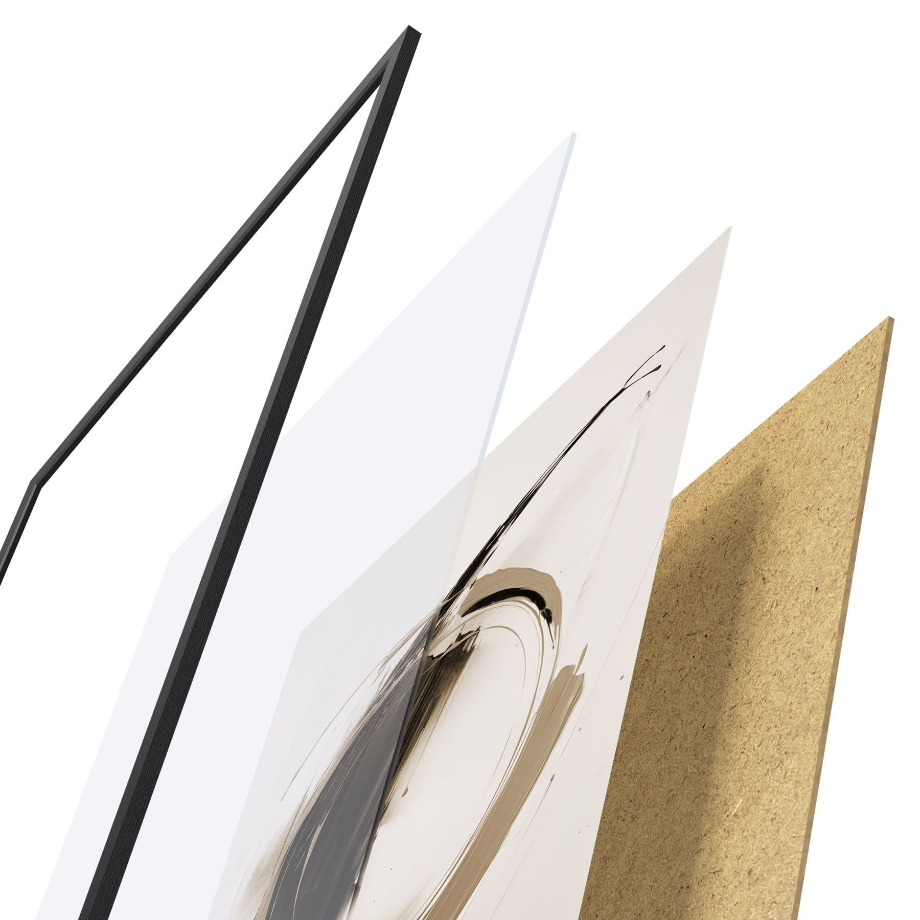 Le poster se compose d'un cadre, d'un plexiglas, d'une image imprimée et d'un support en aggloméré. Le poster peut être immédiatement accroché au mur grâce aux fixations au dos.