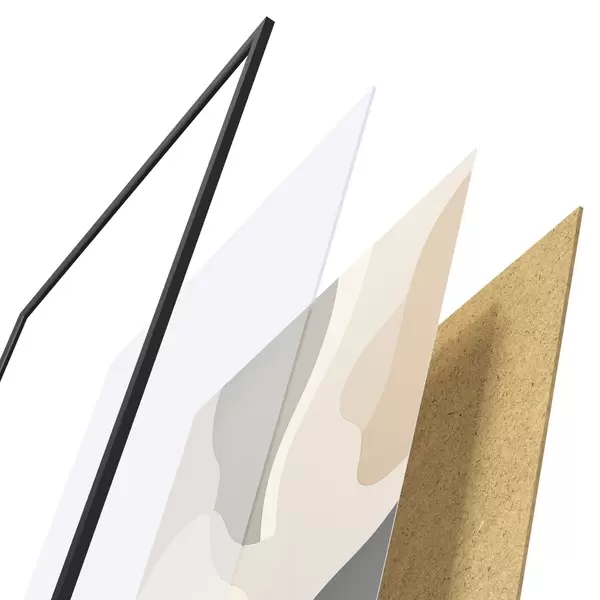 Le poster se compose d'un cadre, d'un plexiglas, d'une image imprimée et d'un support en aggloméré. Le poster peut être immédiatement accroché au mur grâce aux fixations au dos.