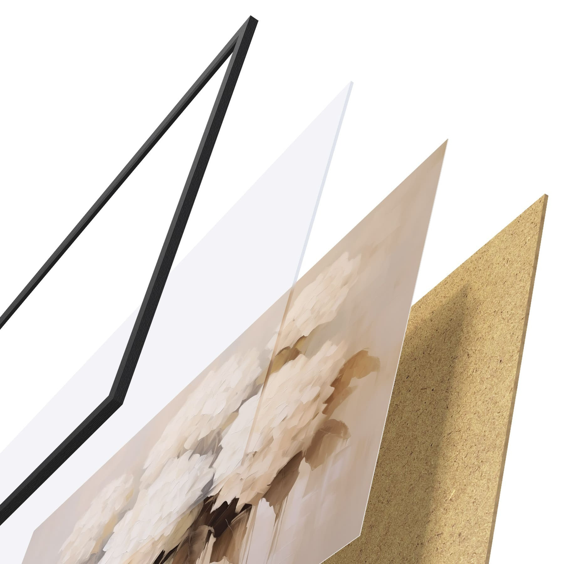 Le poster se compose d'un cadre, d'un plexiglas, d'une image imprimée et d'un support en aggloméré. Le poster peut être immédiatement accroché au mur grâce aux fixations au dos.