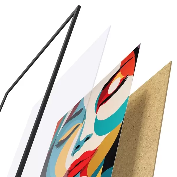 Le poster se compose d'un cadre, d'un plexiglas, d'une image imprimée et d'un support en aggloméré. Le poster peut être immédiatement accroché au mur grâce aux fixations au dos.