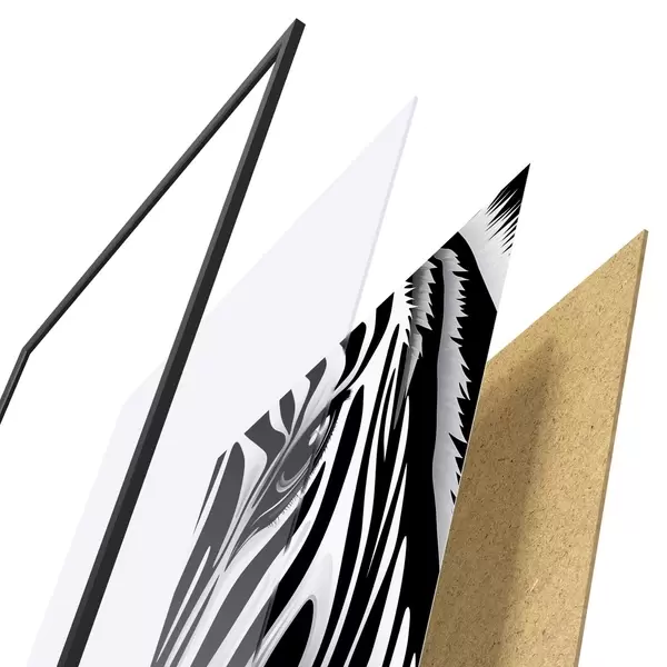 Le poster se compose d'un cadre, d'un plexiglas, d'une image imprimée et d'un support en aggloméré. Le poster peut être immédiatement accroché au mur grâce aux fixations au dos.