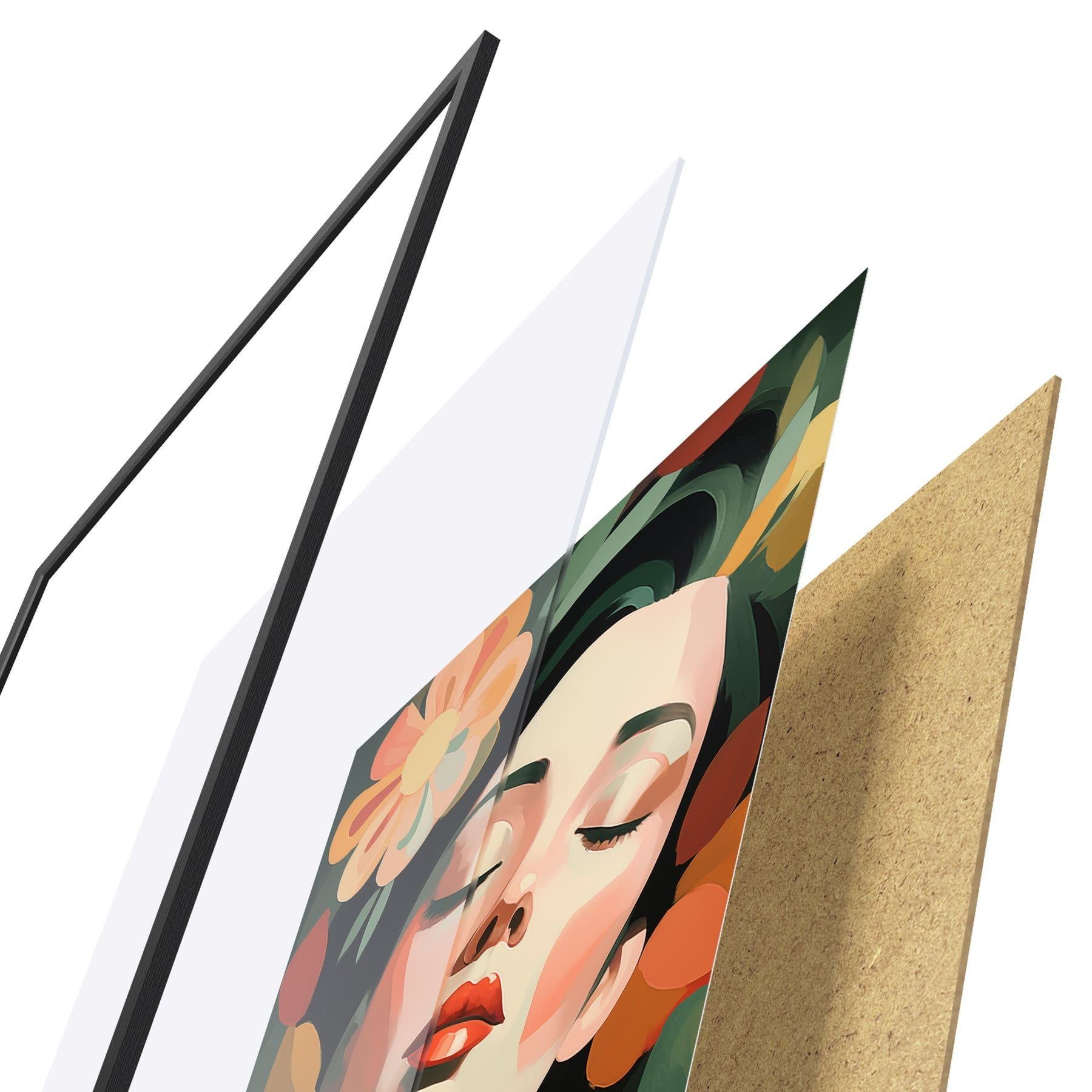 Le poster se compose d'un cadre, d'un plexiglas, d'une image imprimée et d'un support en aggloméré. Le poster peut être immédiatement accroché au mur grâce aux fixations au dos.