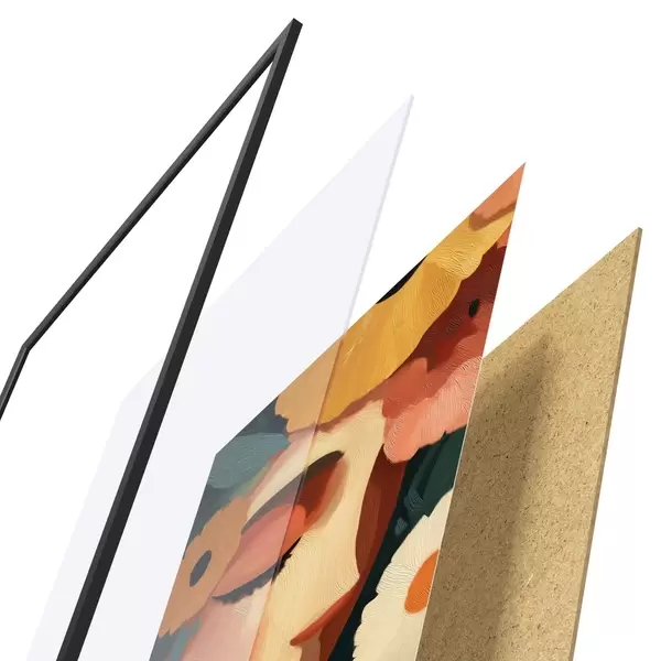 Le poster se compose d'un cadre, d'un plexiglas, d'une image imprimée et d'un support en aggloméré. Le poster peut être immédiatement accroché au mur grâce aux fixations au dos.