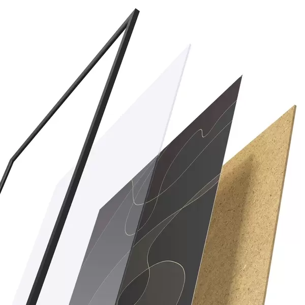 Le poster se compose d'un cadre, d'un plexiglas, d'une image imprimée et d'un support en aggloméré. Le poster peut être immédiatement accroché au mur grâce aux fixations au dos.