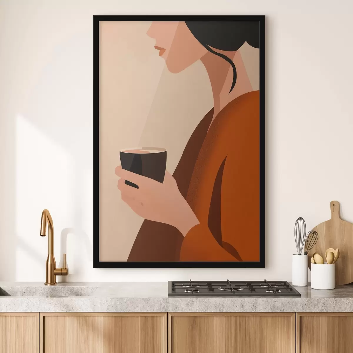 Affiche Femme avec une tasse (style minimaliste) Non f49019