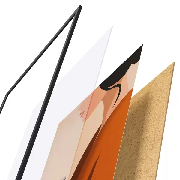 Le poster se compose d'un cadre, d'un plexiglas, d'une image imprimée et d'un support en aggloméré. Le poster peut être immédiatement accroché au mur grâce aux fixations au dos.