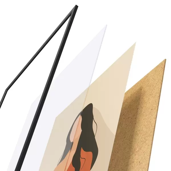 Le poster se compose d'un cadre, d'un plexiglas, d'une image imprimée et d'un support en aggloméré. Le poster peut être immédiatement accroché au mur grâce aux fixations au dos.