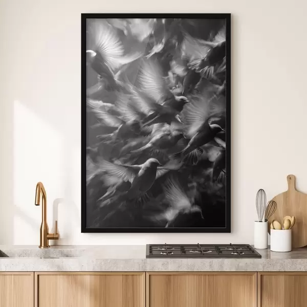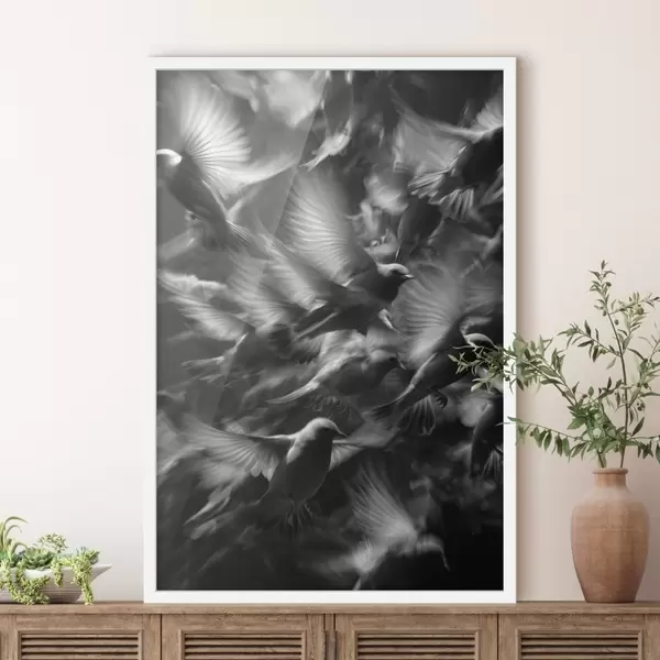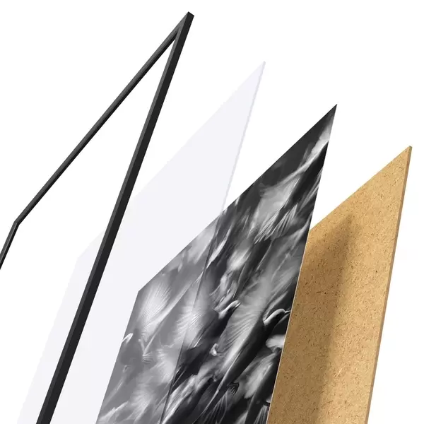 Le poster se compose d'un cadre, d'un plexiglas, d'une image imprimée et d'un support en aggloméré. Le poster peut être immédiatement accroché au mur grâce aux fixations au dos.