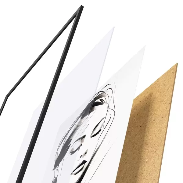 Le poster se compose d'un cadre, d'un plexiglas, d'une image imprimée et d'un support en aggloméré. Le poster peut être immédiatement accroché au mur grâce aux fixations au dos.