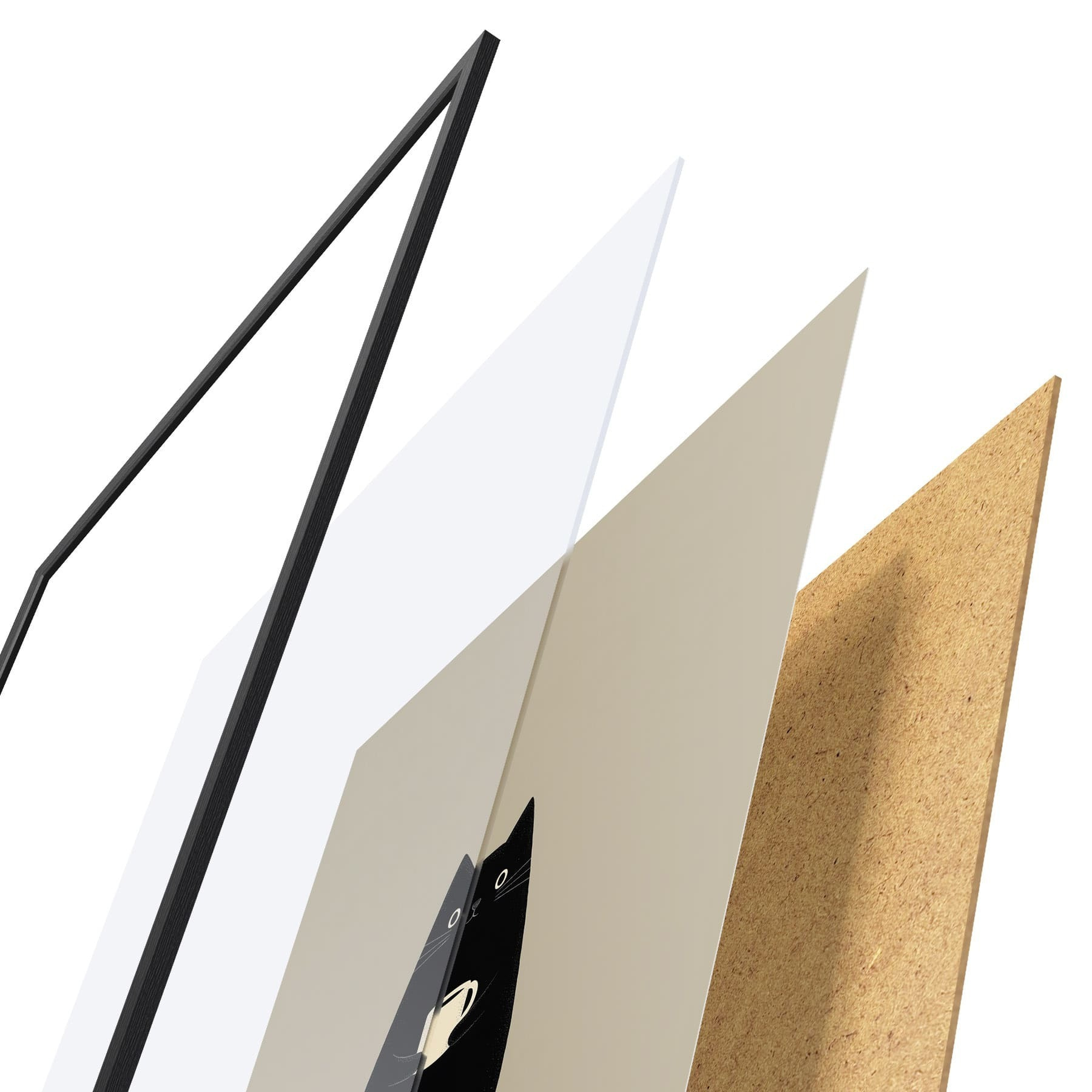 Le poster se compose d'un cadre, d'un plexiglas, d'une image imprimée et d'un support en aggloméré. Le poster peut être immédiatement accroché au mur grâce aux fixations au dos.