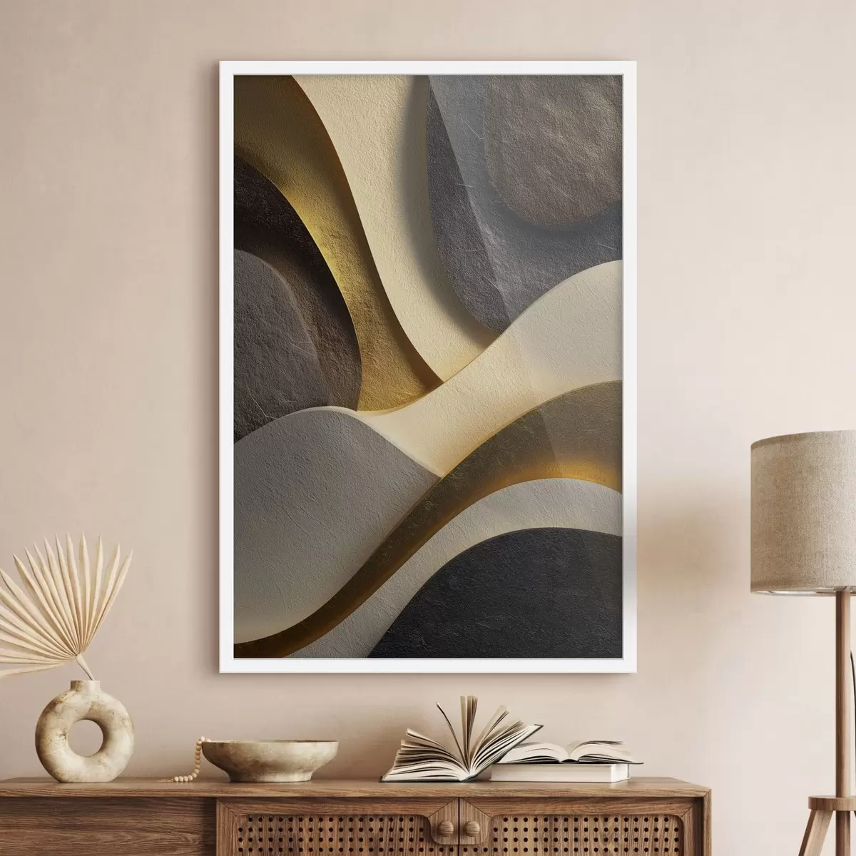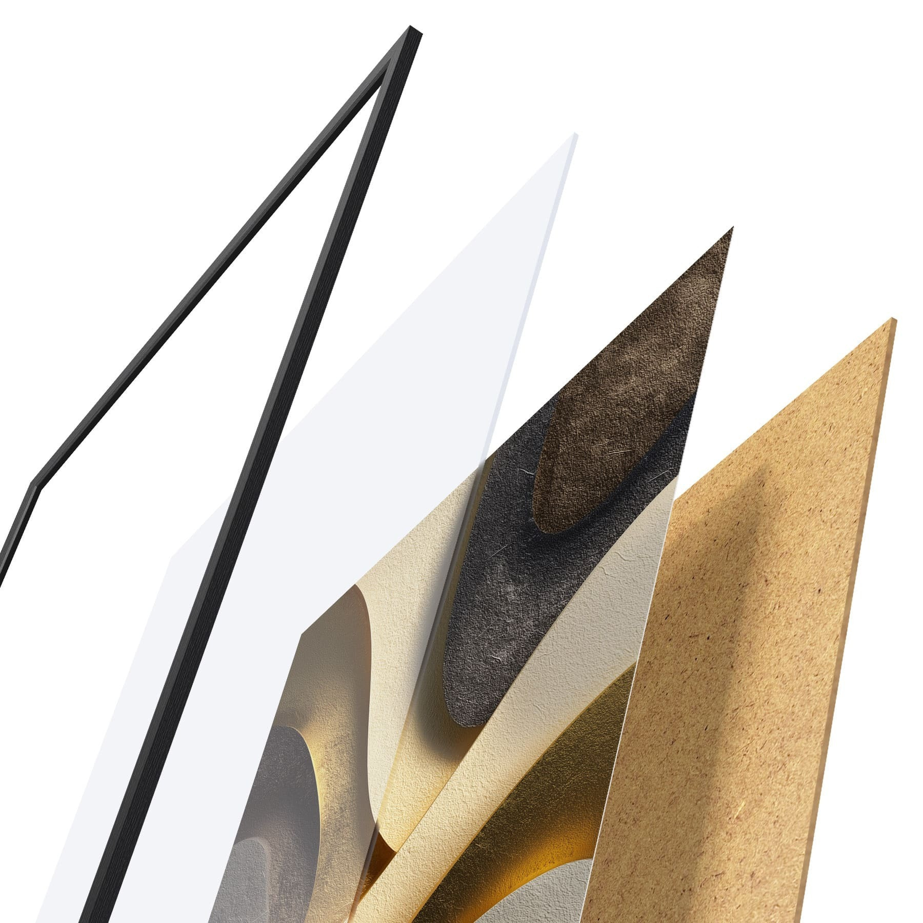 Le poster se compose d'un cadre, d'un plexiglas, d'une image imprimée et d'un support en aggloméré. Le poster peut être immédiatement accroché au mur grâce aux fixations au dos.