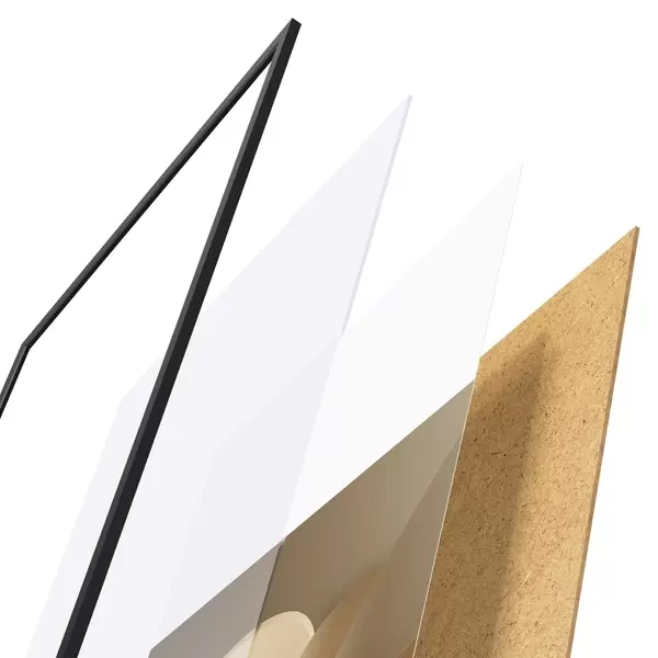Le poster se compose d'un cadre, d'un plexiglas, d'une image imprimée et d'un support en aggloméré. Le poster peut être immédiatement accroché au mur grâce aux fixations au dos.