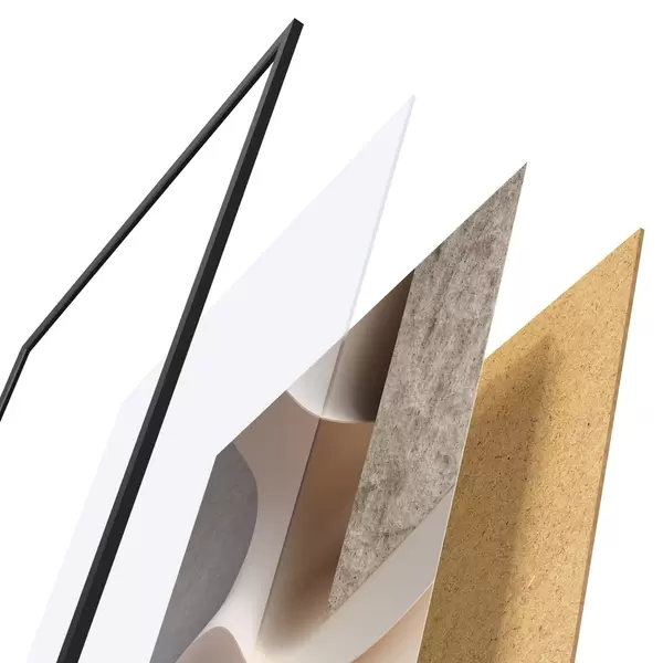Le poster se compose d'un cadre, d'un plexiglas, d'une image imprimée et d'un support en aggloméré. Le poster peut être immédiatement accroché au mur grâce aux fixations au dos.