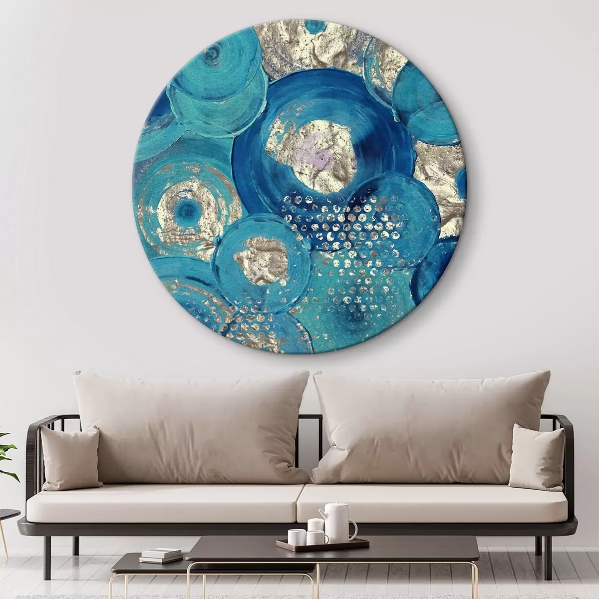 Tableaux ronds Cercles azurés avec des points, peintures à l'huile r01035