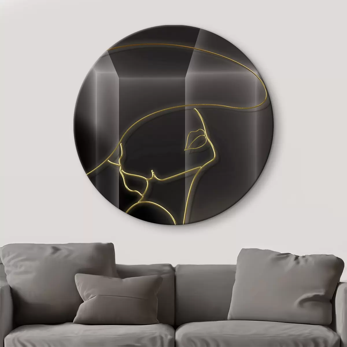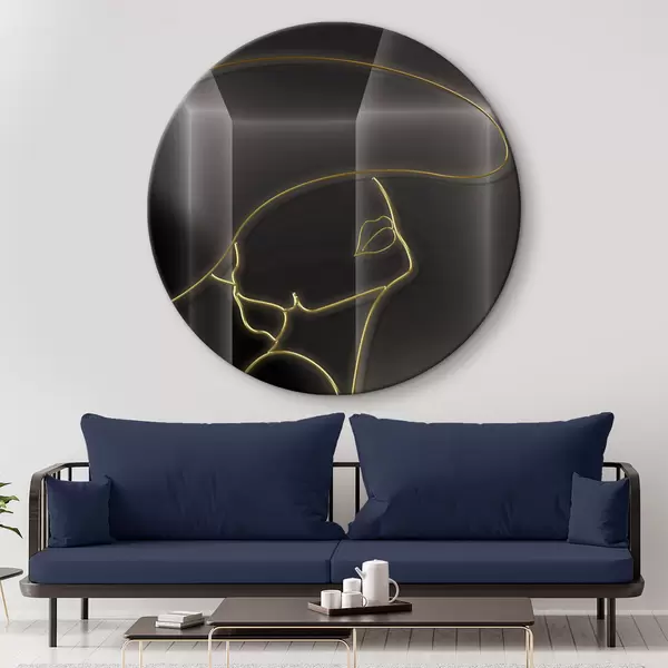 Tableaux ronds Femme avec un chapeau sur fond de lune r01416