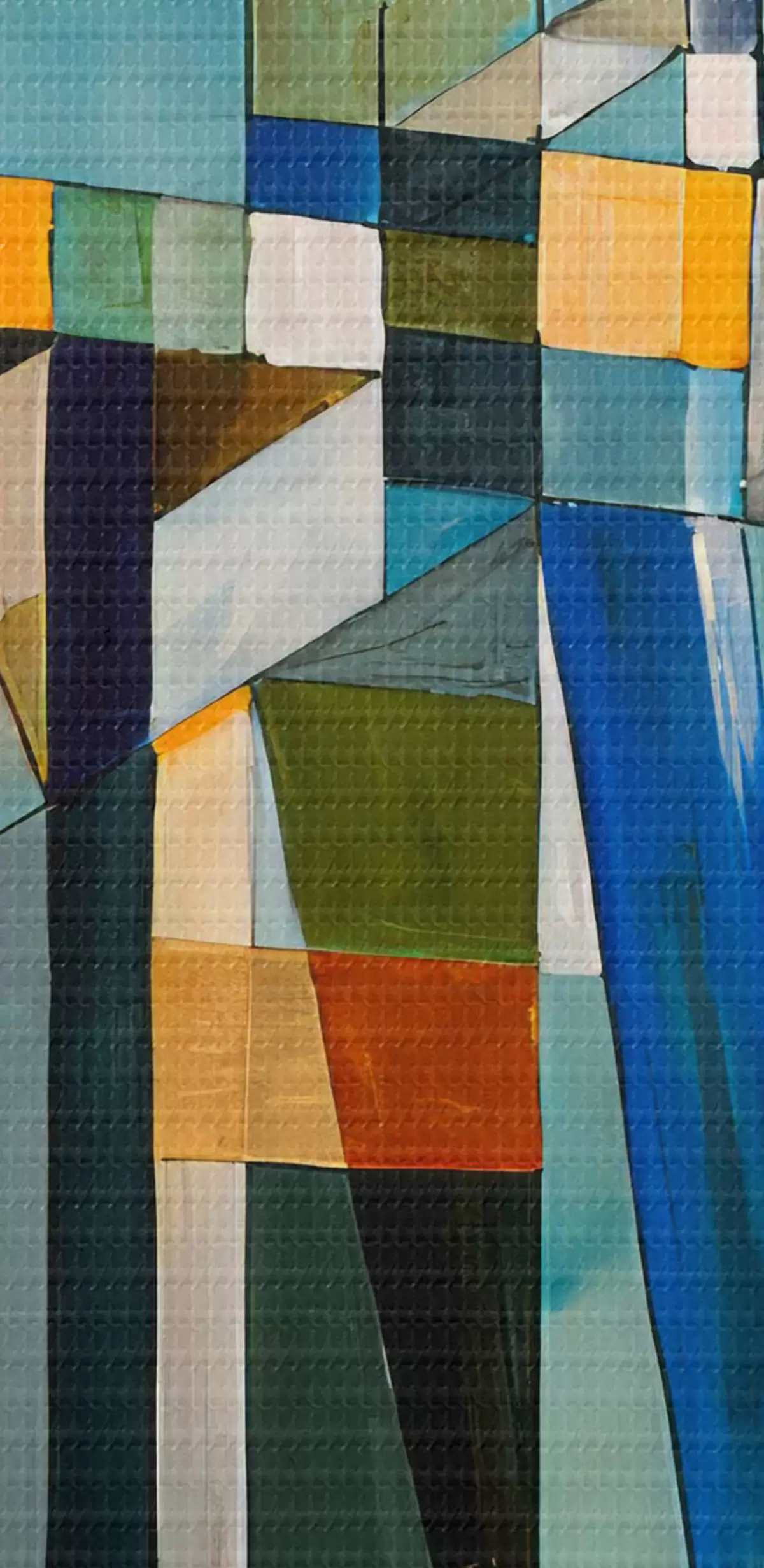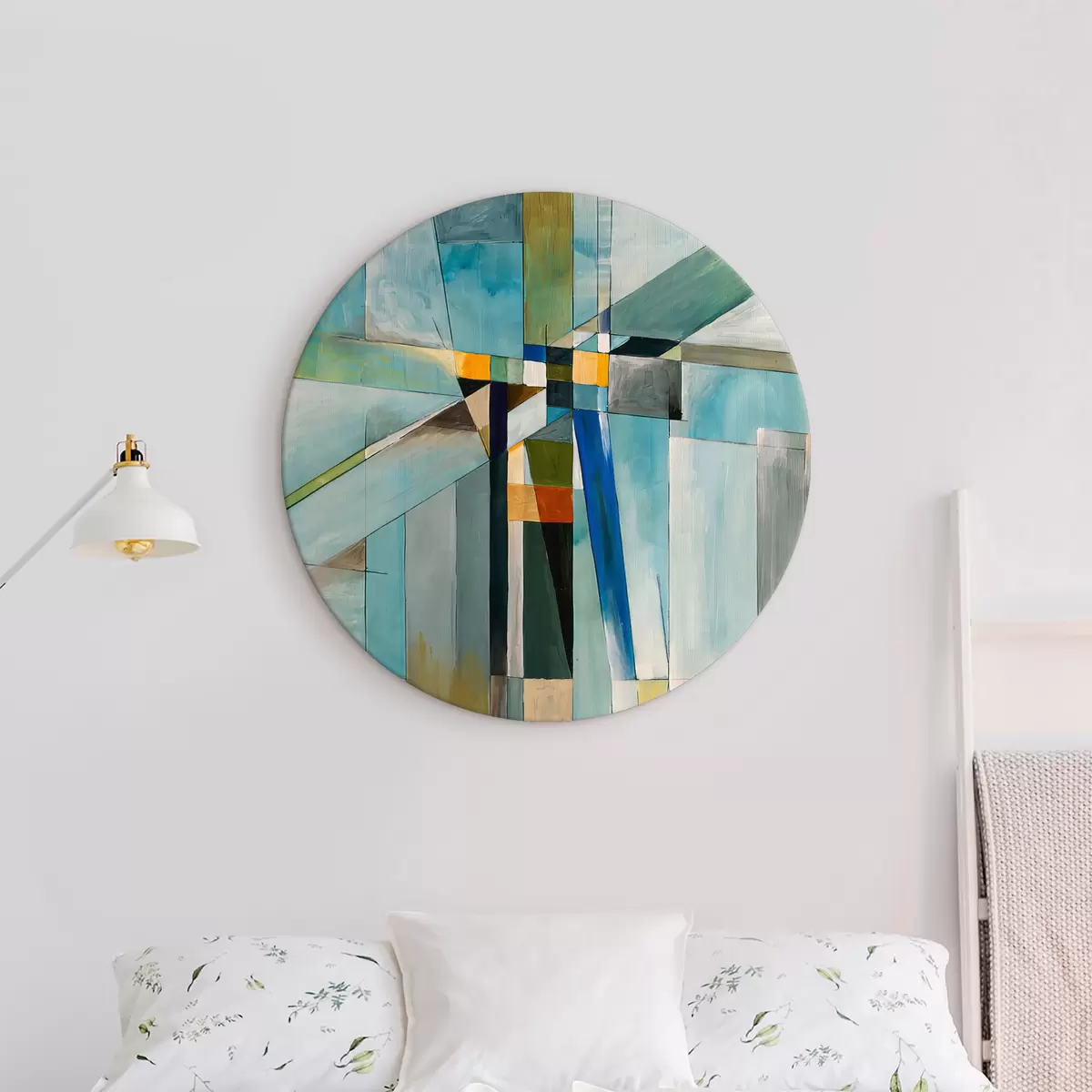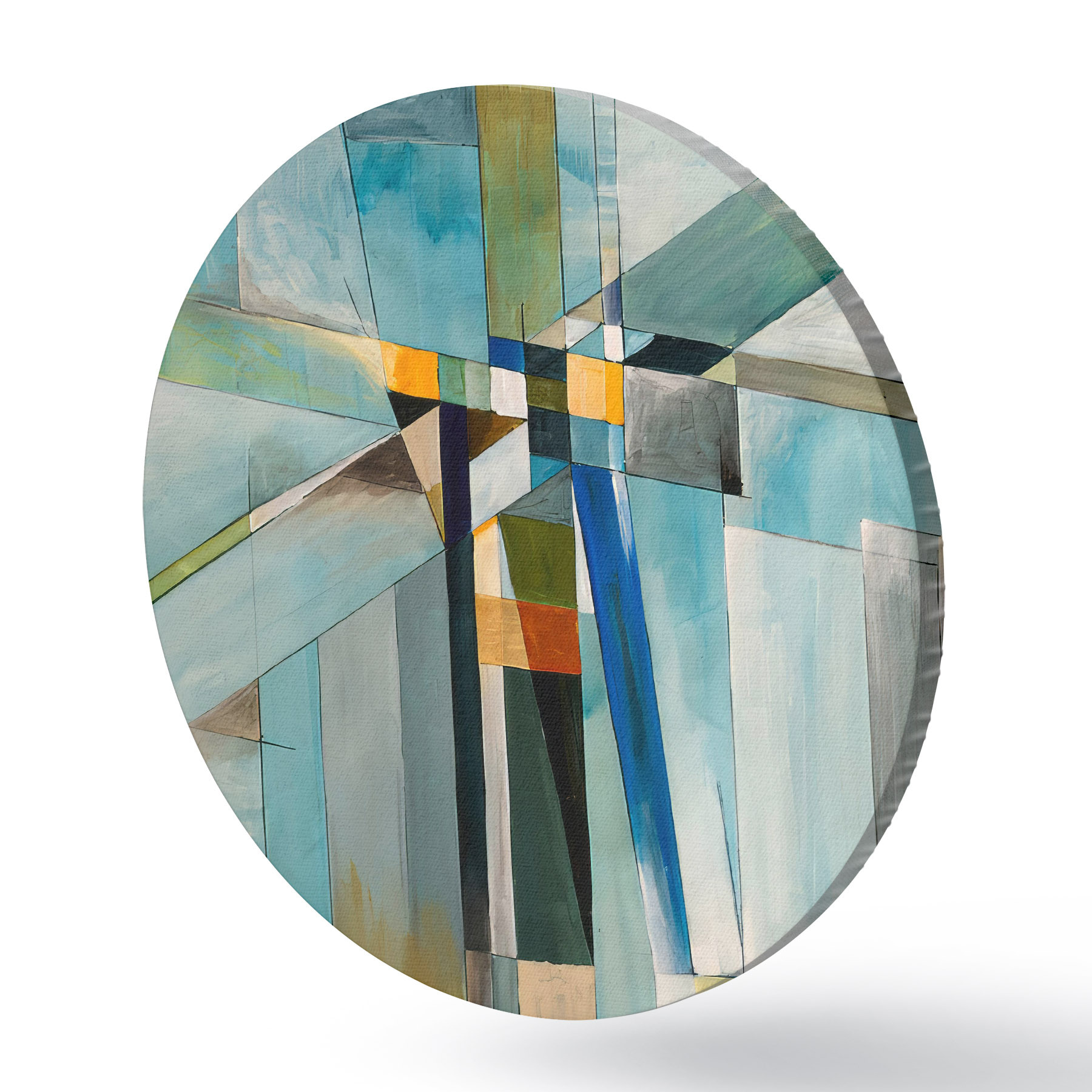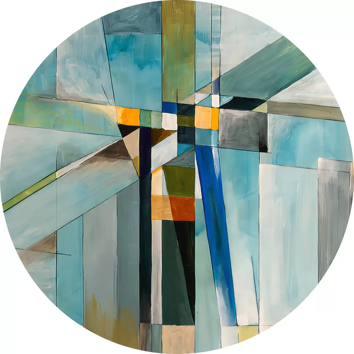Tableaux ronds Peinture, azur et textiles r03060