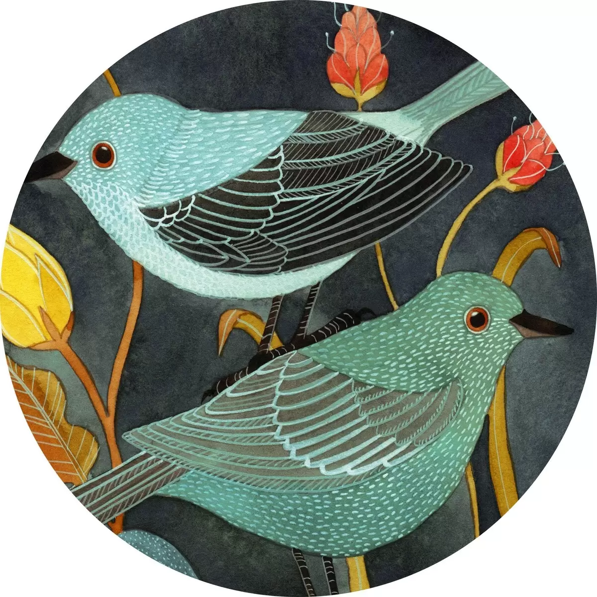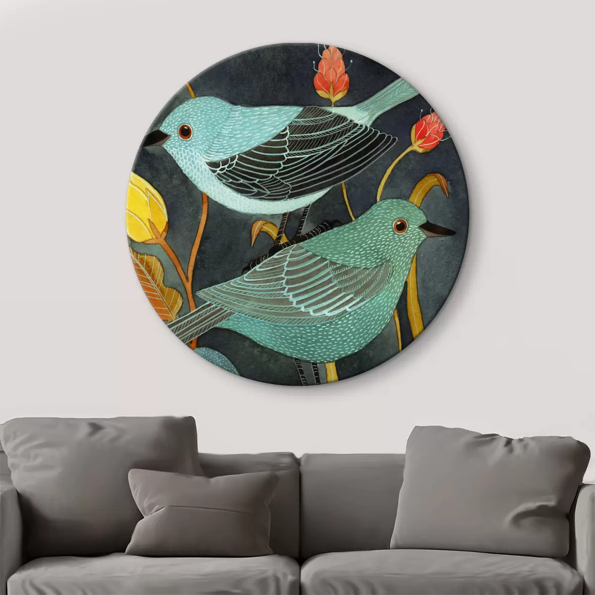 Tableaux ronds Trois oiseaux regardent autour d'eux r03061