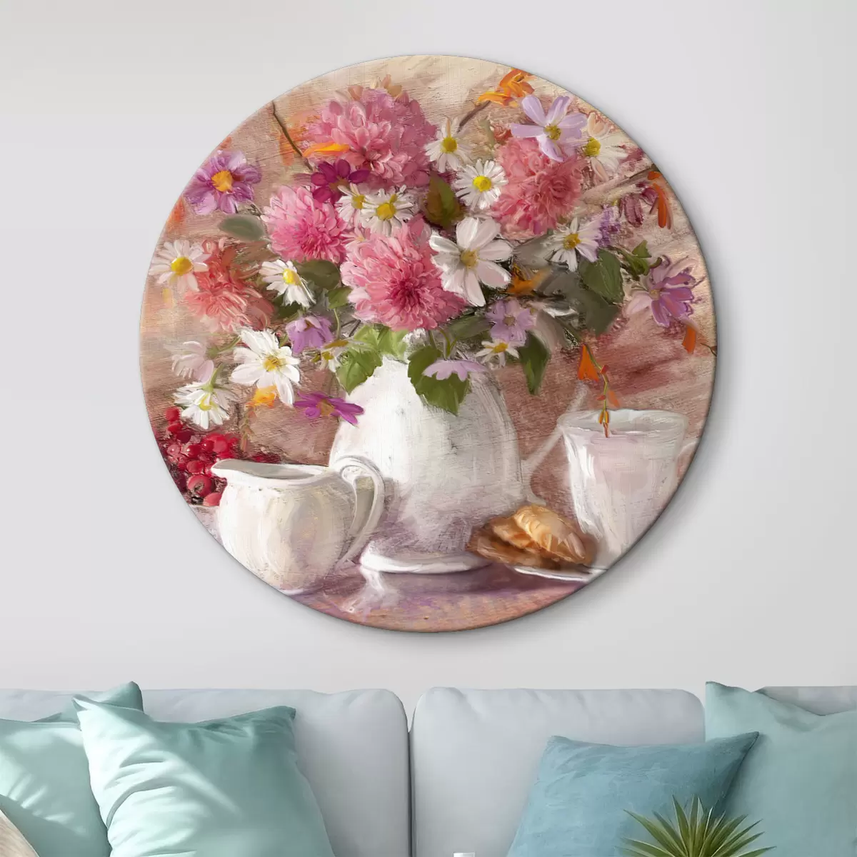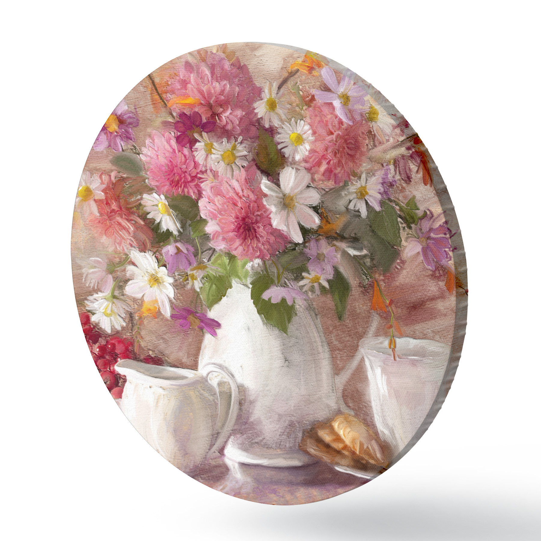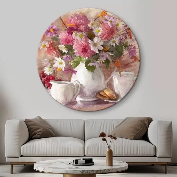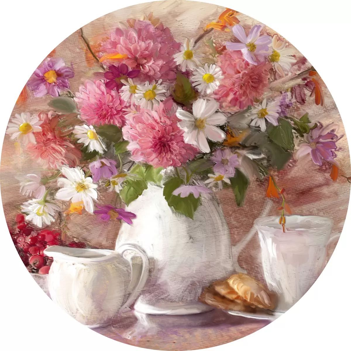 Tableaux ronds Service à thé avec un bouquet de fleurs roses délicates r29240