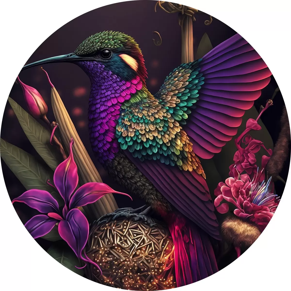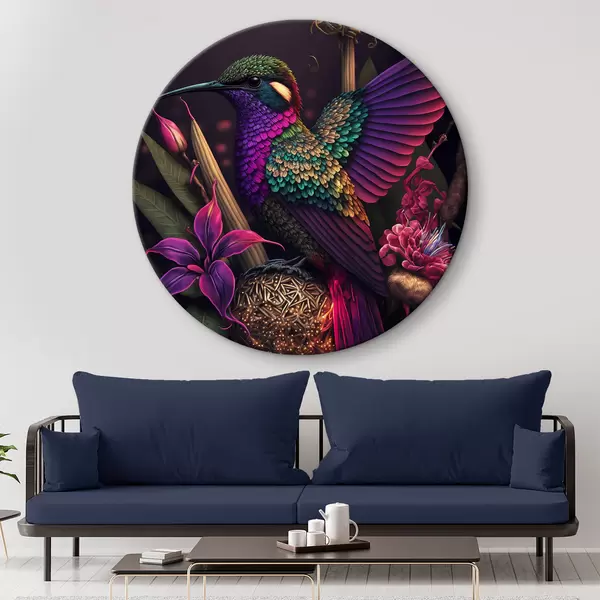 Tableaux ronds Oiseau, violet et lumière r33703