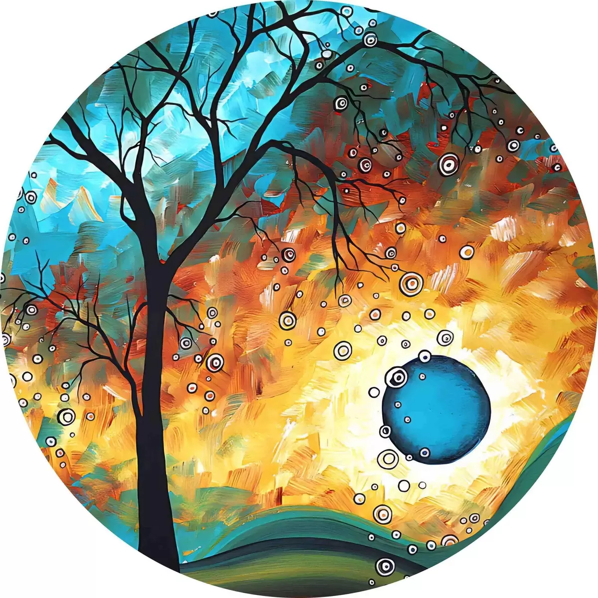 Tableaux ronds Arbre avec un motif arc-en-ciel r34434