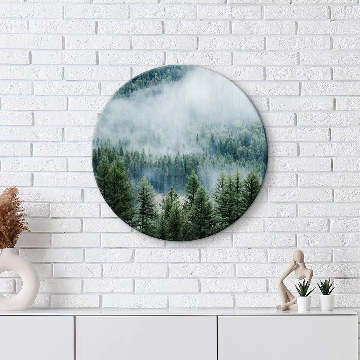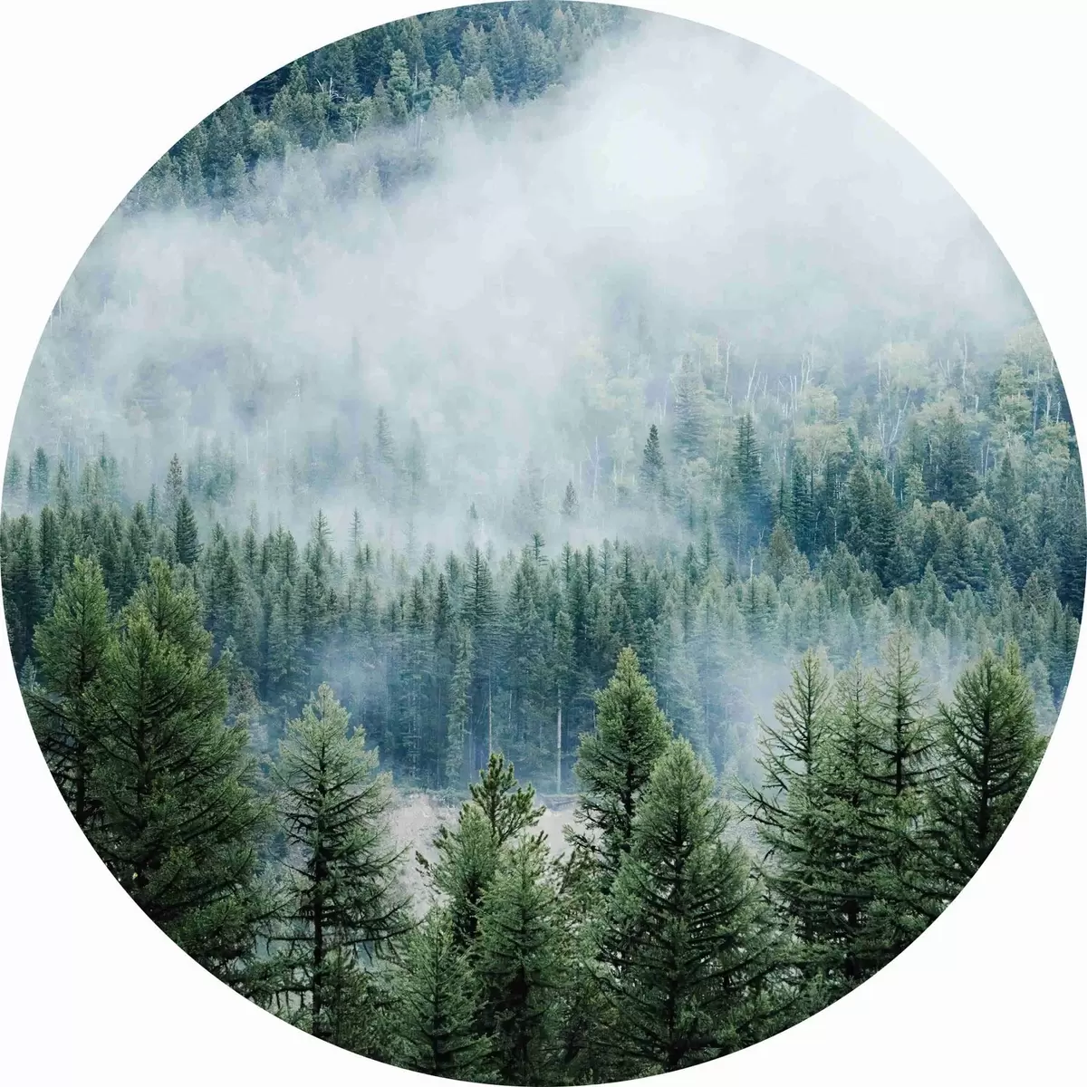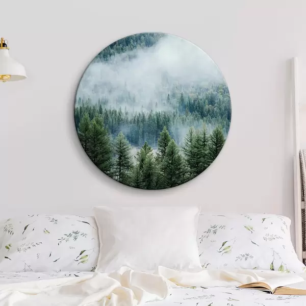 Tableaux ronds Forêt de conifères dans le brouillard r34825