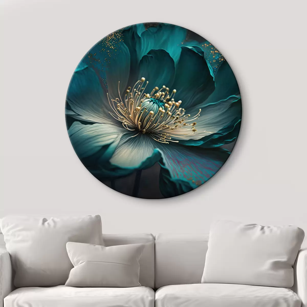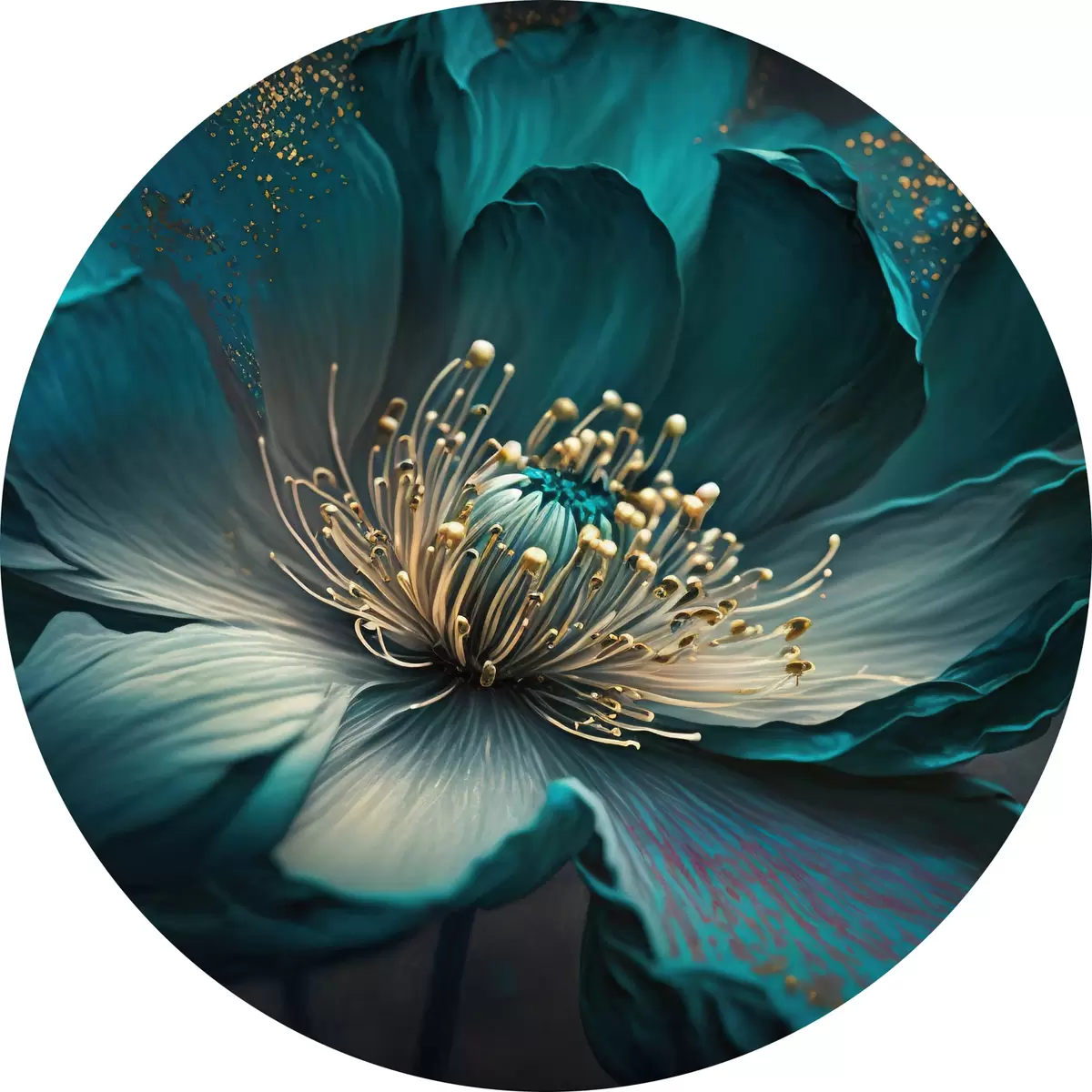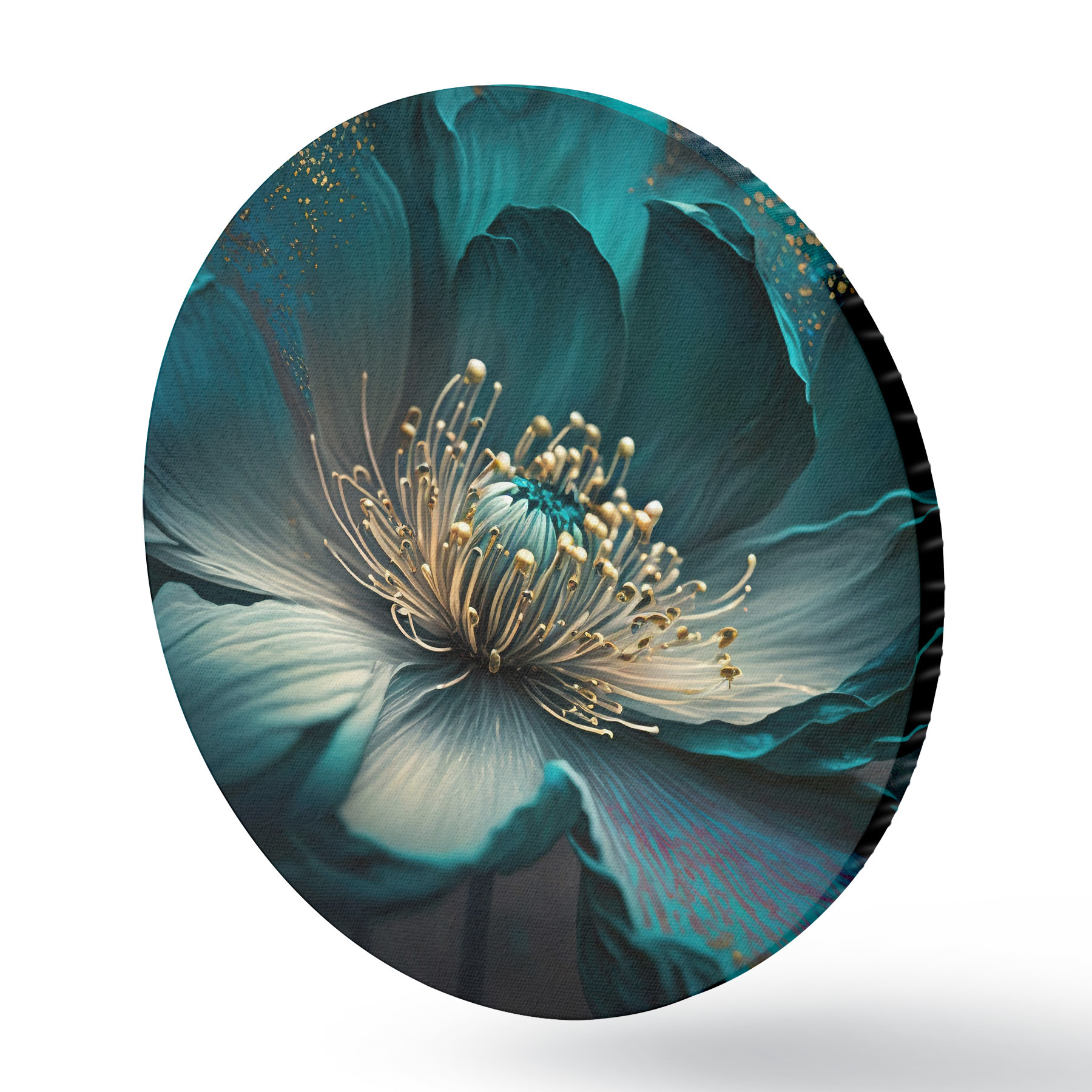 Tableaux ronds Fleur turquoise - gros plan r34854