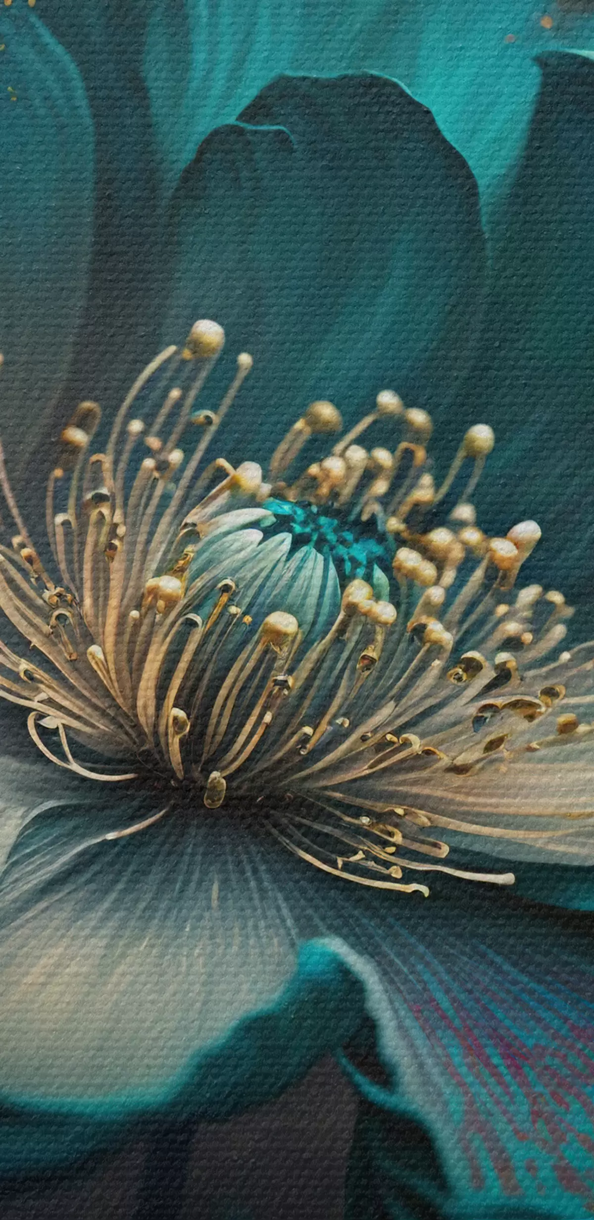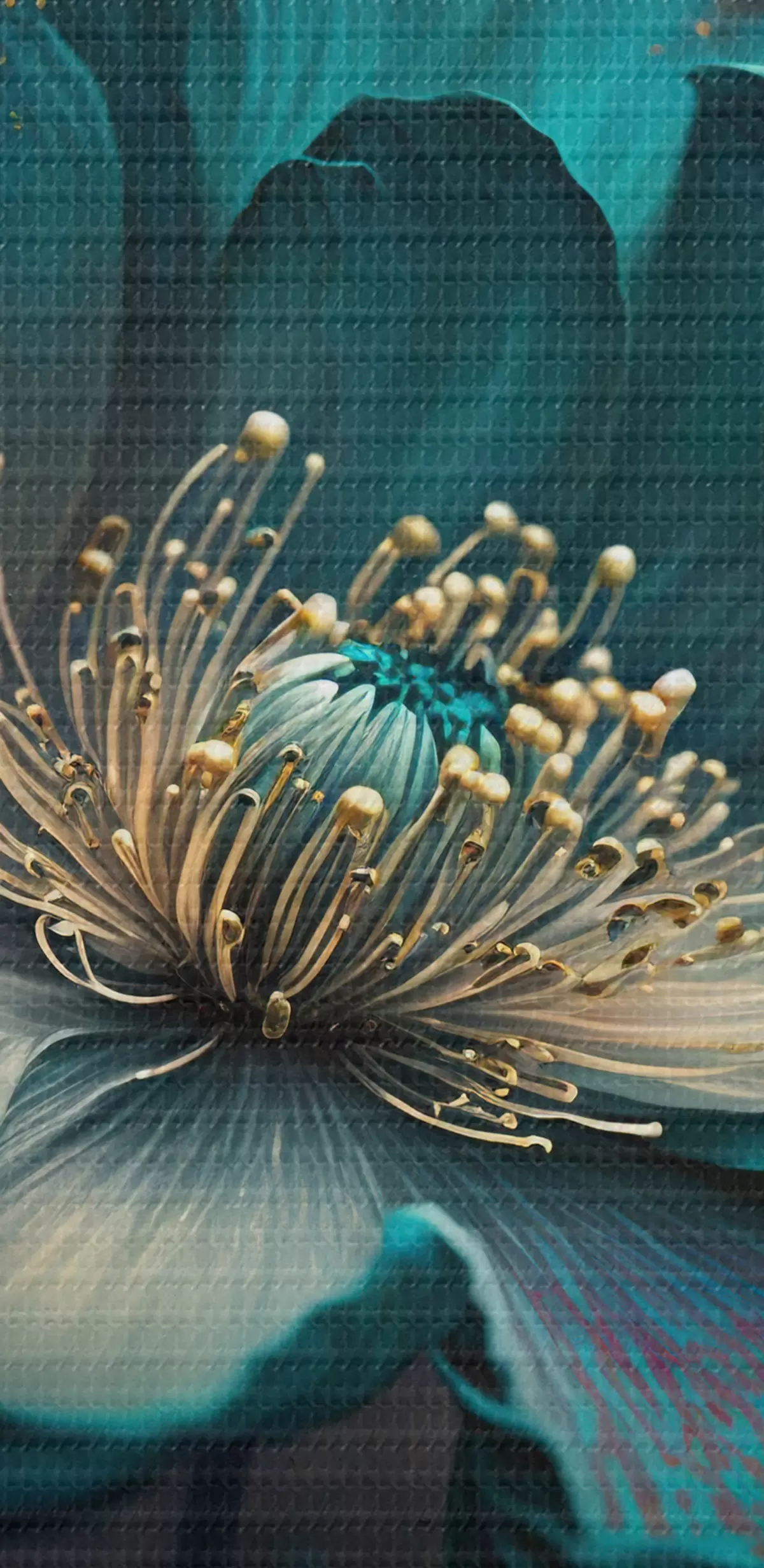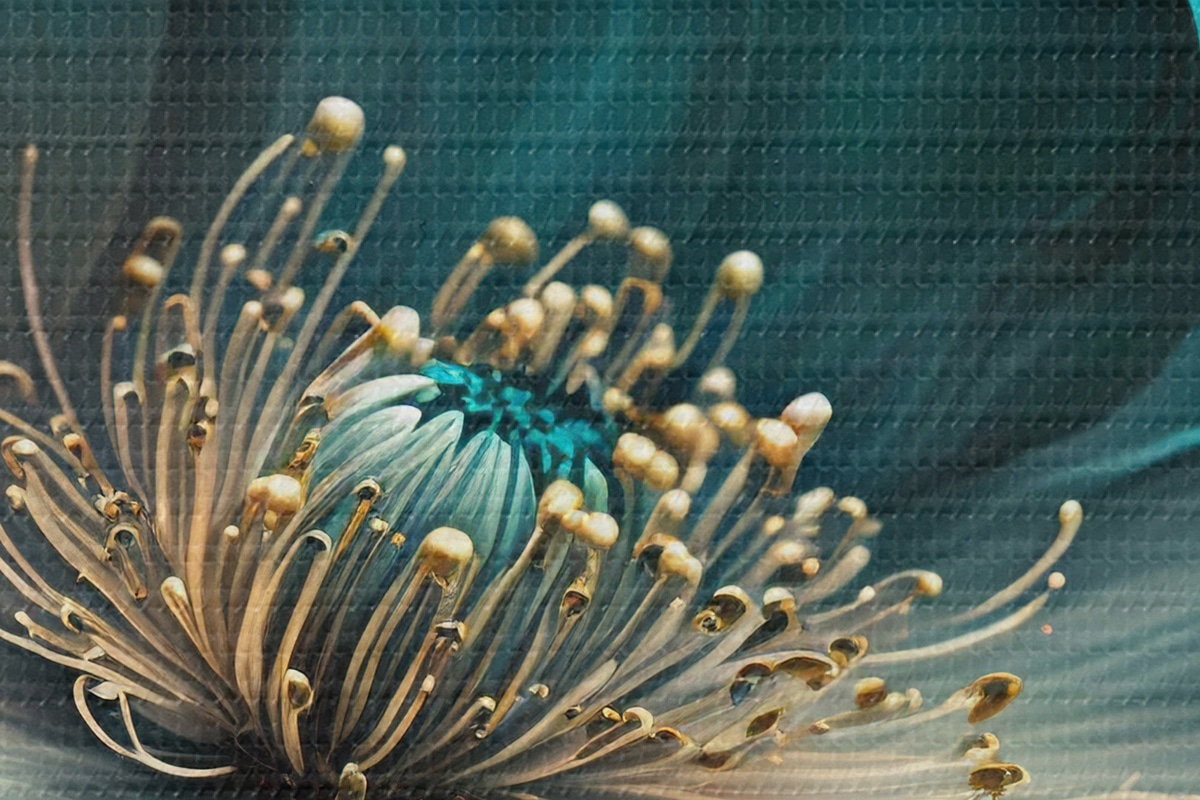 Tableaux ronds Fleur turquoise - gros plan r34854