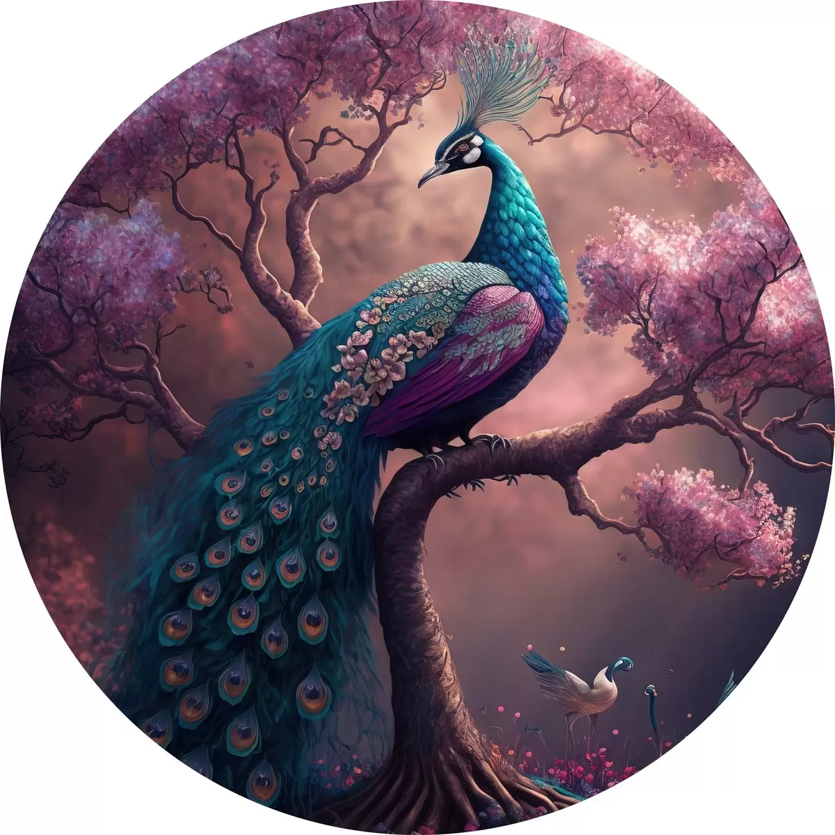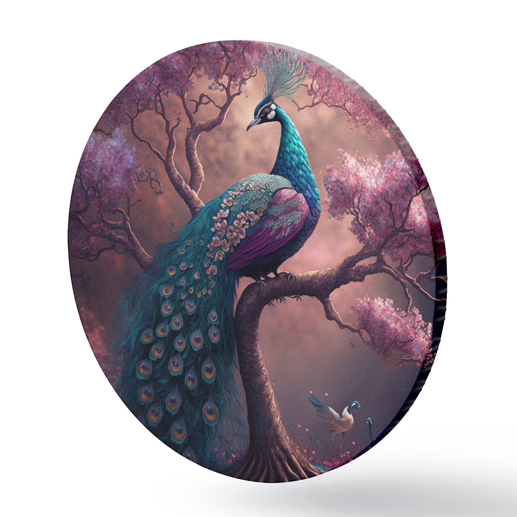 Tableaux ronds Oiseau, nature et violet r34875