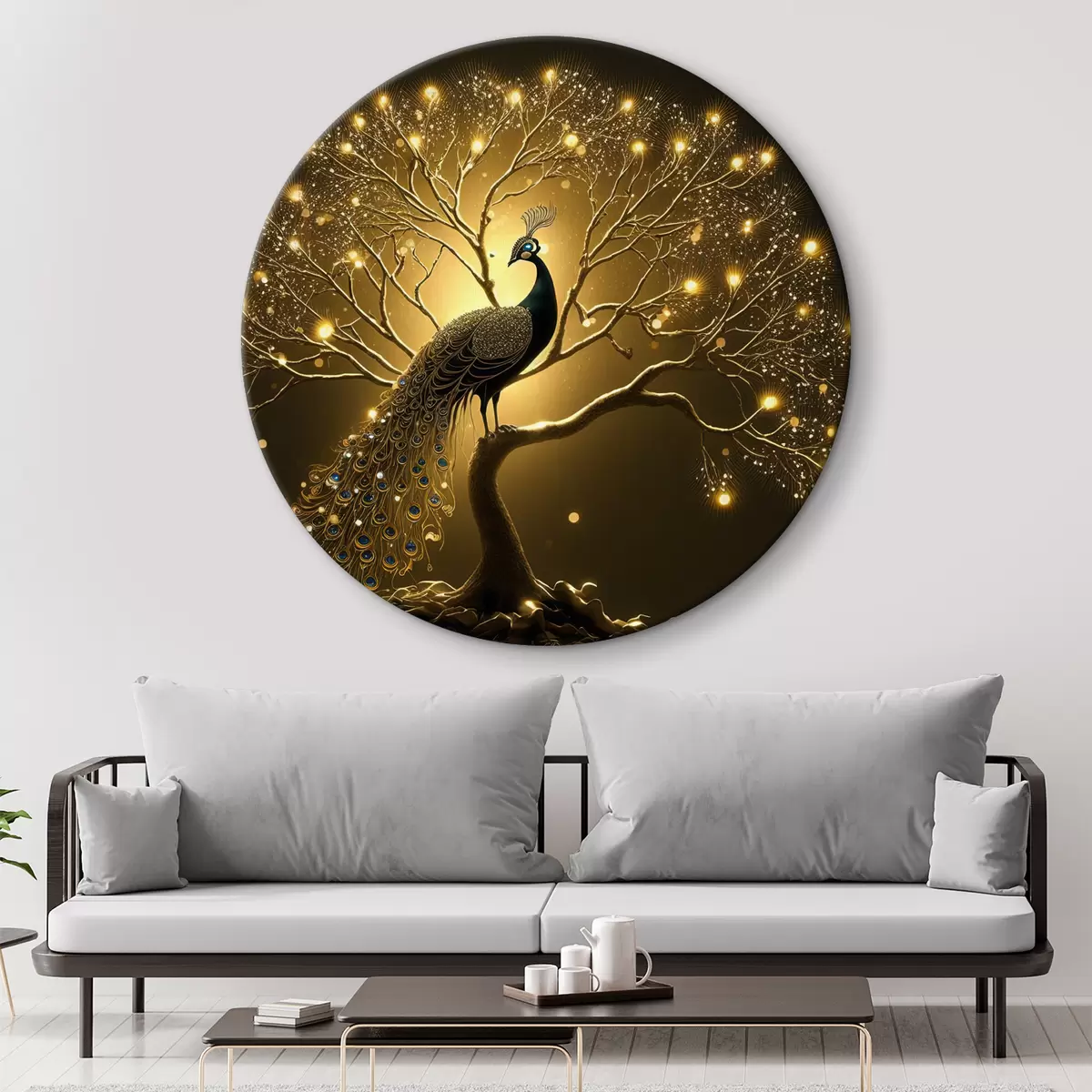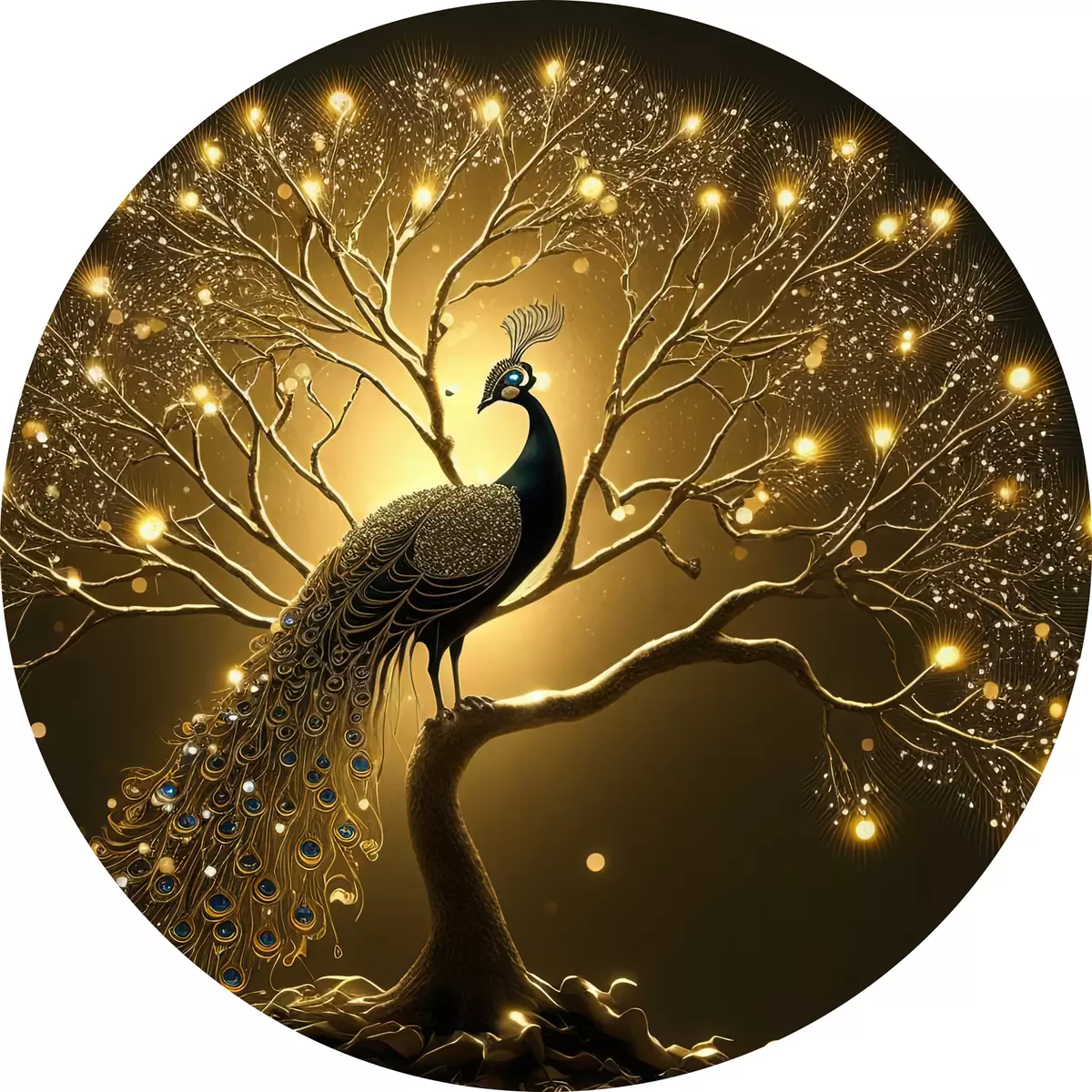 Tableaux ronds Paon sur un arbre en fleurs r34876