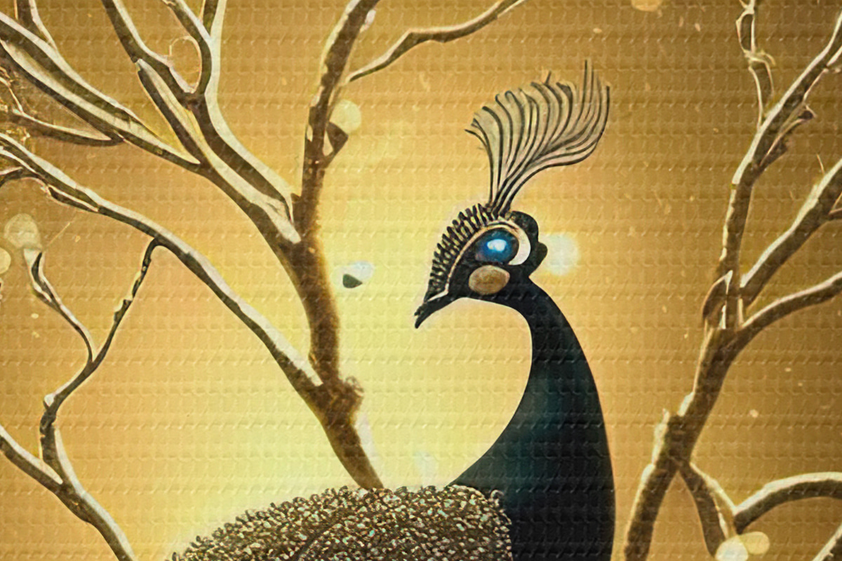 Image Paon sur un arbre en fleurs Nr r34876