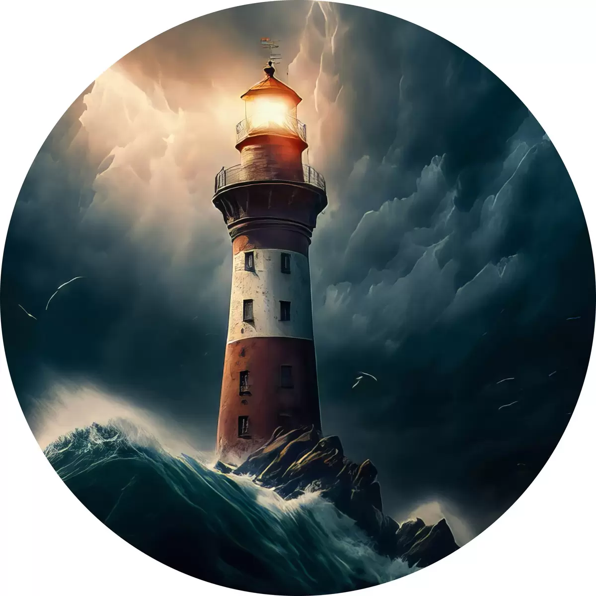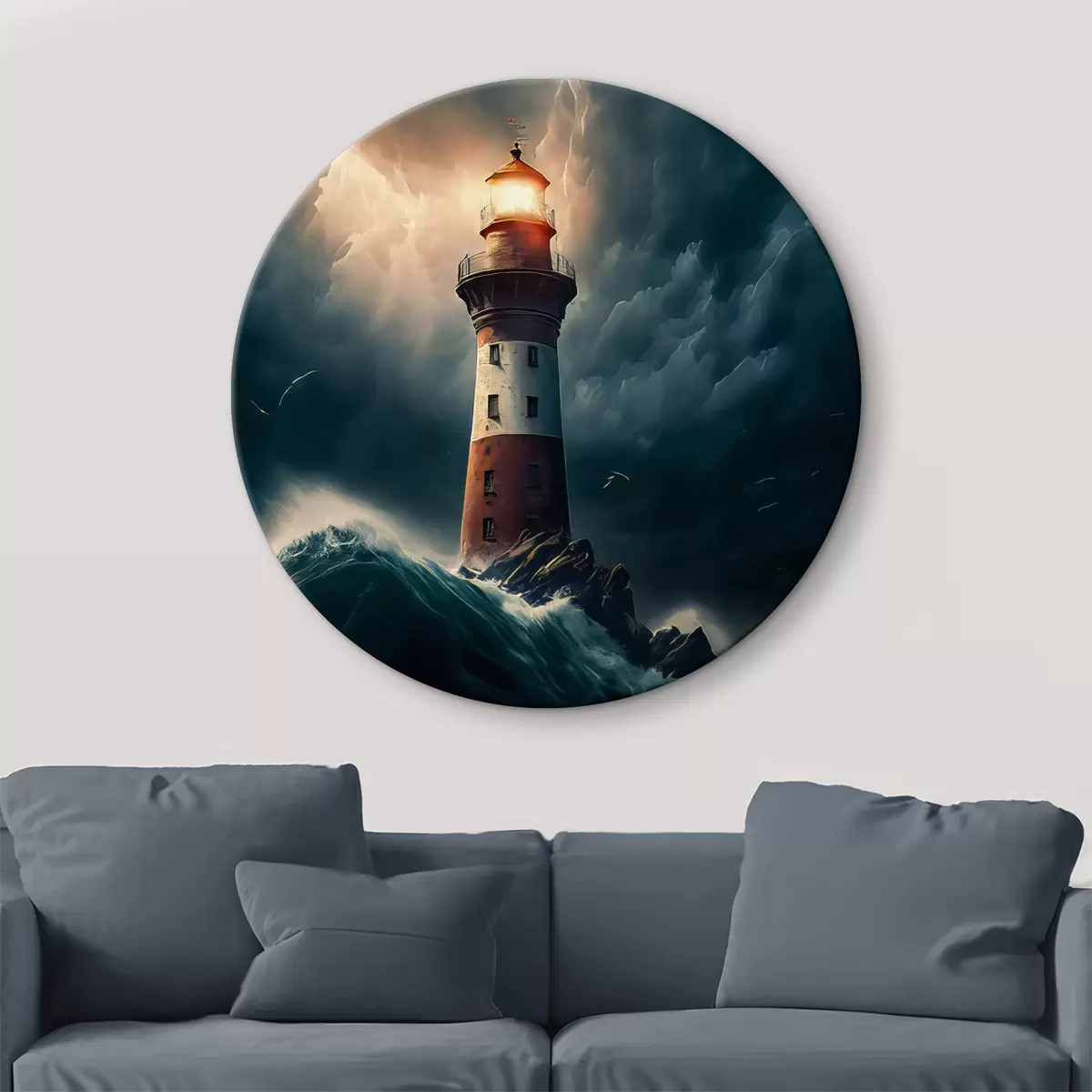 Tableaux ronds Phare pittoresque sur une île isolée pendant une tempête r35349
