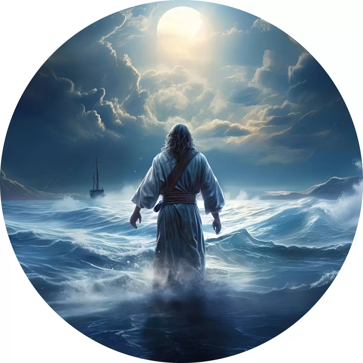 Tableaux ronds Un homme regardant la pleine lune la nuit r35357