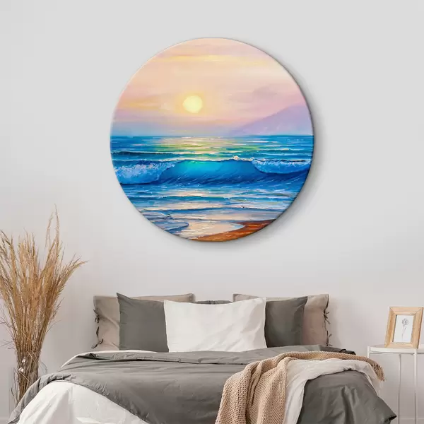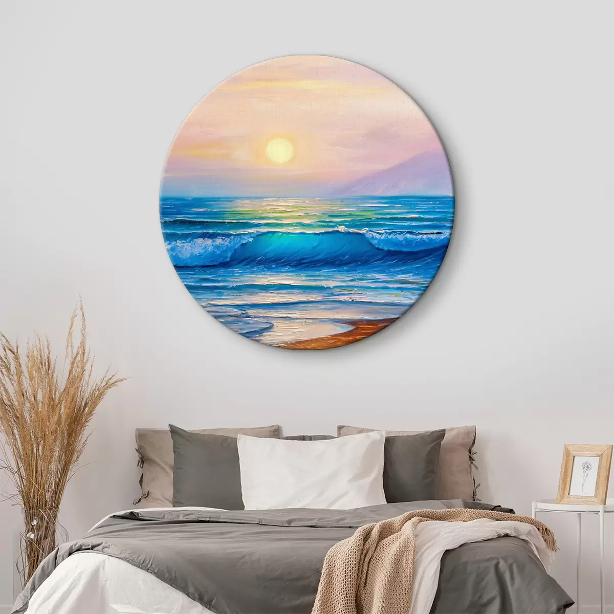 Tableaux ronds Coucher de soleil rose sur fond de mer r35378