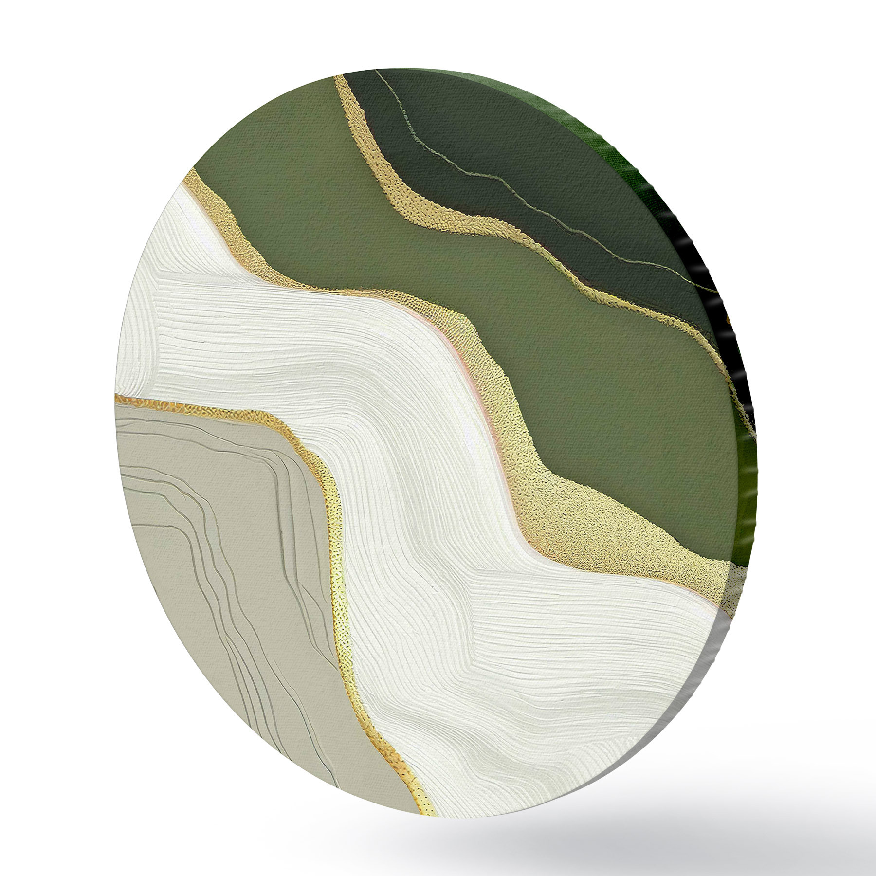 Tableaux ronds Une peinture à l'huile abstraite réalisée avec des peintures noires, blanches, vertes et grises r35427